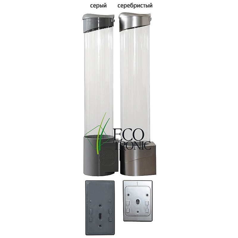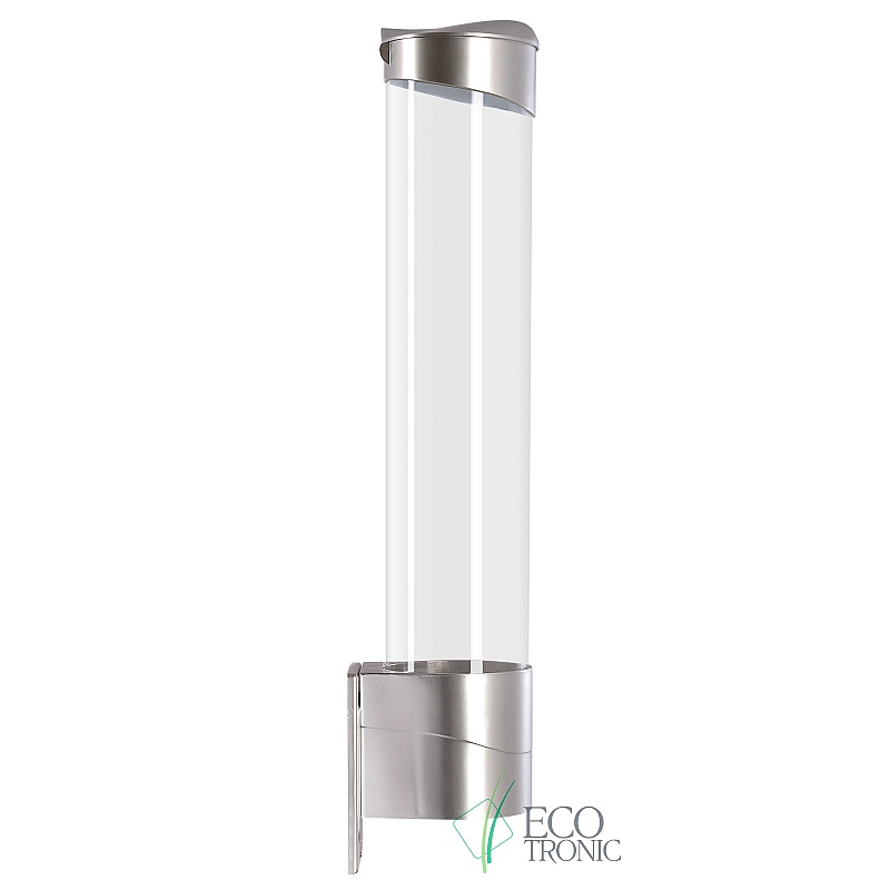 Красивый держатель для стаканчиков от Ecotronic, представляющий собой прозрачную колбу из высококачественного поликарбоната, имеющую дно и защитную крышку серебристого цвета. Модель вмещает около 50 стаканчиков. В комплект к аксессуару входит держатель с двумя шурупами, возможен монтаж с магнитным держателем.