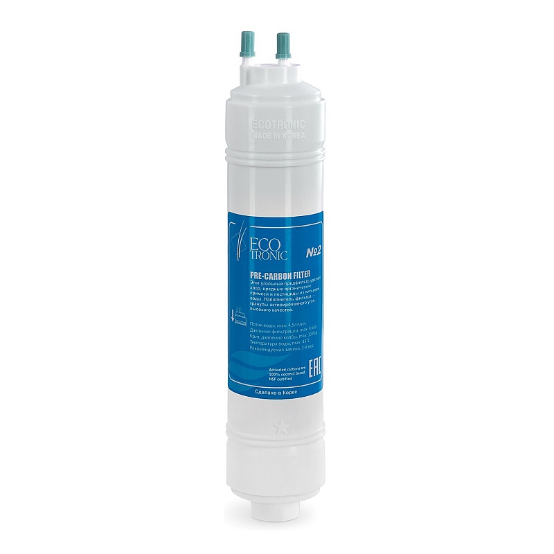 Угольный пре-фильтр. Производство Юж. Корея. Засыпка фильтра - активированный уголь. Размер 14 дюймов. Ресурс 3000 - 6000л., но не более 6 месяцев. Имеет выходы для быстрого соединения типа цанга-цанга. Может использоваться в любых моделях пурифайеров напольного и настольного типа. Удаляет хлор и органические химические вещества. Улучшает запах и вкус.