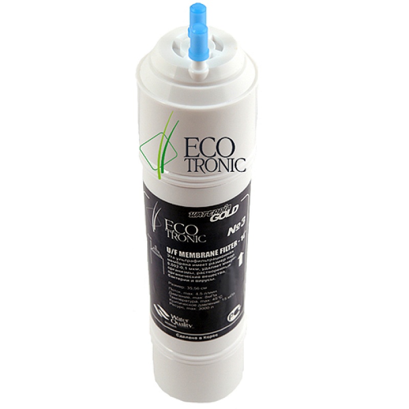 Ультрафильтрационная мембрана. Производство Южная Корея. Размер 12 дюймов. Ресурс 6000 - 12000л, но не более 6 месяцев. Имеет выходы для быстрого соединения типа цанга-цанга. Может использоваться в любых моделях пурифайеров напольного типа.