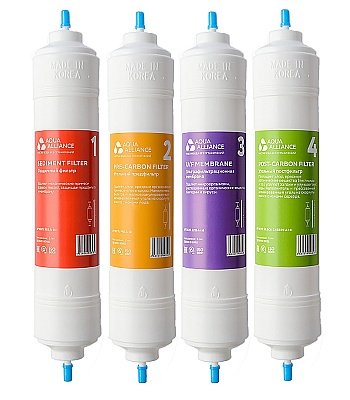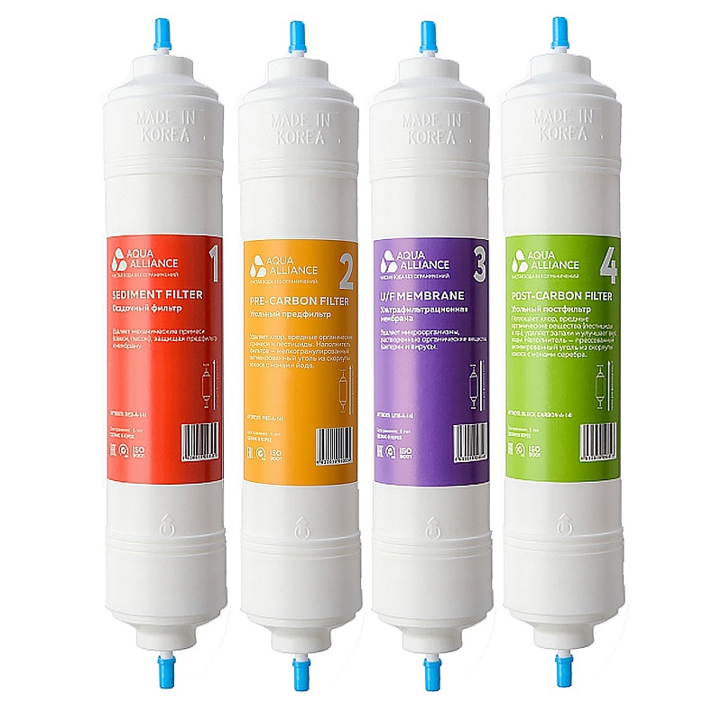 Комплект из 4-х сменных картриджей типа 14" для пурифайеров с ультрафильтрационной мембраной (UF). I-тип. Рекомендуемая замена фильтров не реже 1 раза в 6 месяцев. Ресурс до 6000л. При большом потреблении (школы, детские сады, фитнес-центры) фильтры должны меняться ОДИН раз в ДВА месяца. Универсальные, подходят для моделей пурифайеров различных производителей.