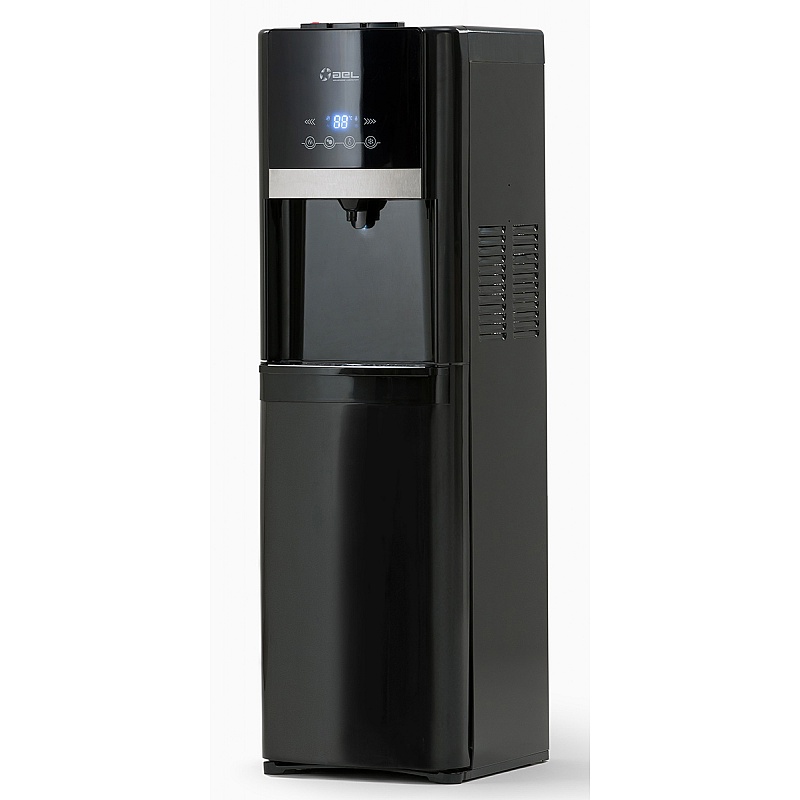 Премиум-аппарат напольного исполнения в эффектном черном цвете. Кулер оснащен тремя клавишами: для подачи горячей, холодной и прохладной воды, а также электронным табло с панелью установки температур и подсветкой. Установка параметров кулера производится с помощью сенсорных кнопок. Стильный и строгий дизайн дополняет никелированная вставка на передней панели. Фронтальная часть аппарата выполнена из глянцевого пластика, а боковые панели из окрашенного матового металла.
