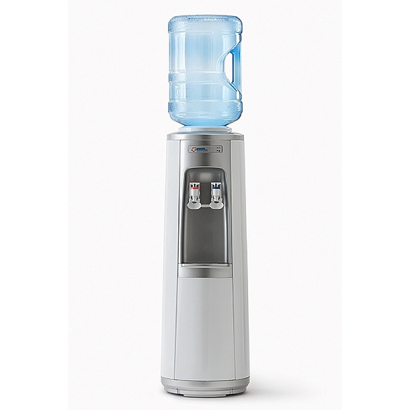 Необычный дизайн оригинальной цилиндрической формы. Кулер выполнен в белом цвете с серыми вставками и станет прекрасным функциональным украшением любого офисного помещения, а также справится со своими задачами в домашних условиях. В конструкцию модели входят надежные баки для горячей и холодной воды.