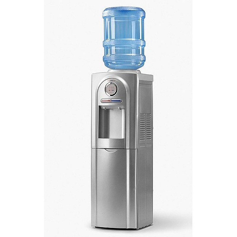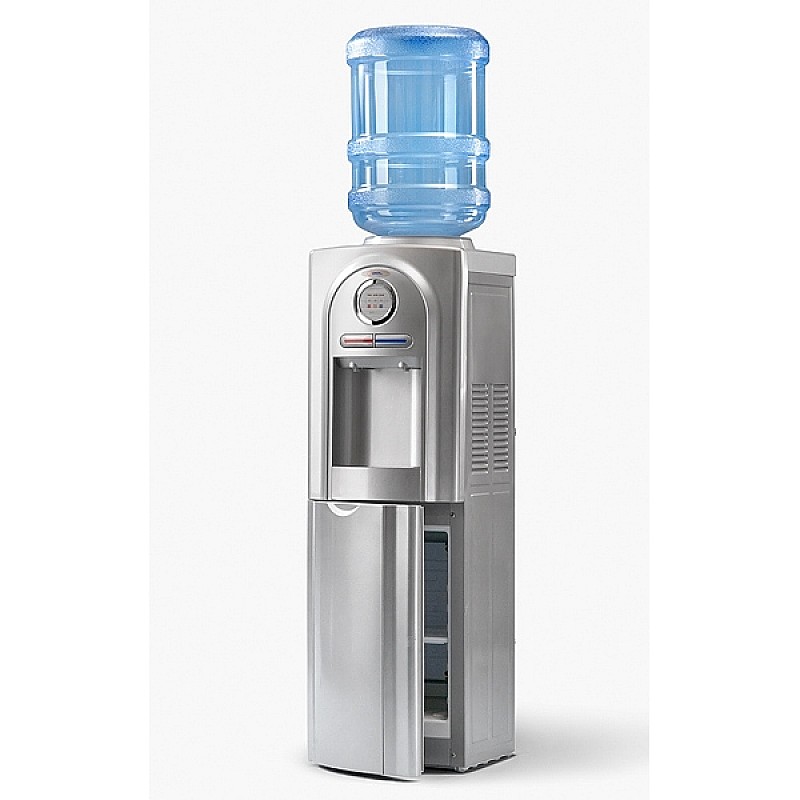 Со шкафчиком-озонатором на 16л и компрессорным охлаждением интересного дизайна в насыщенном серебристом цвете. Подача воды осуществляется с помощью механических кнопок, обозначенных гармоничными вставками соответствующего цвета.
