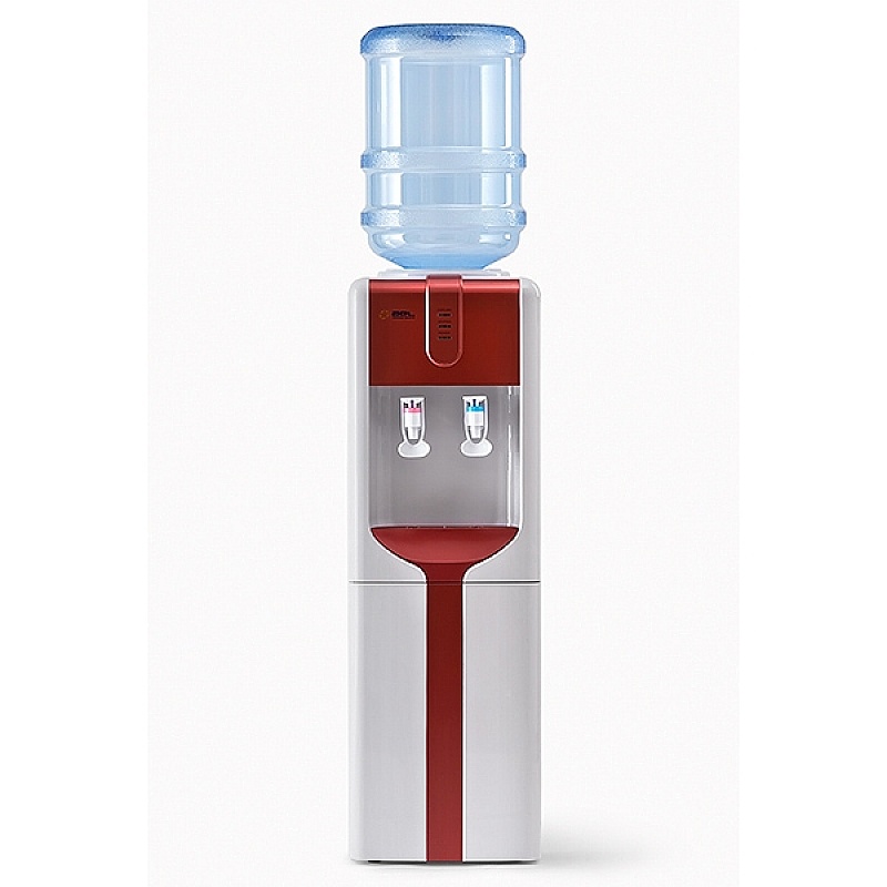 Классическая компрессорная модель современного дизайна. Корпус выполнен в белом цвете с элегантной красной вставкой. Индикация включения нагрева/охлаждения на фронтальной панели. Краны "нажим чашкой" в случае выхода из строя легко меняются.