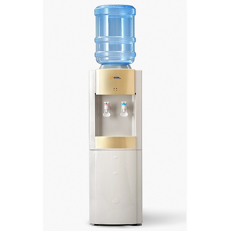 Прекрасное качество сборки и оригинальный дизайн с золотистыми акцентами в основной рабочей зоне кулера. Корпус состоит из пластиковых легкозаменяемых панелей. В модель встроены независимые тумблеры, отключающие нагрев и охлаждение, а также небольшой удобный 20л холодильник.