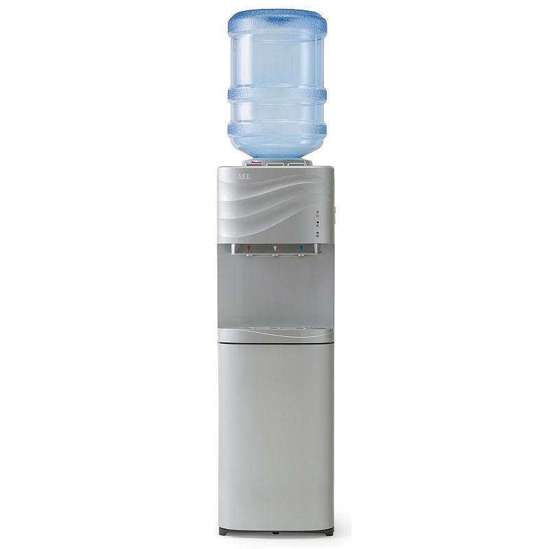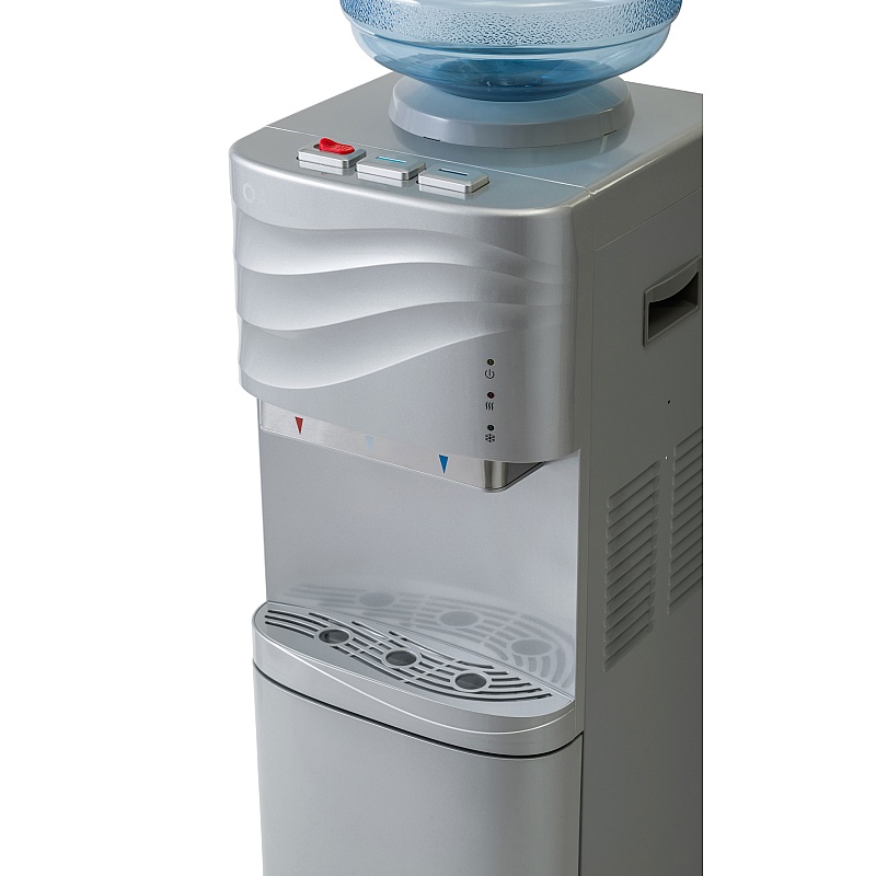 Классический аппарат оригинального дизайна с волной на лицевой панели. Серебристый цвет. Три краника-клавиши (горячая/прохладная/холодная). Клавиша горячей воды с защитой. Компрессорное производительное охлаждение.