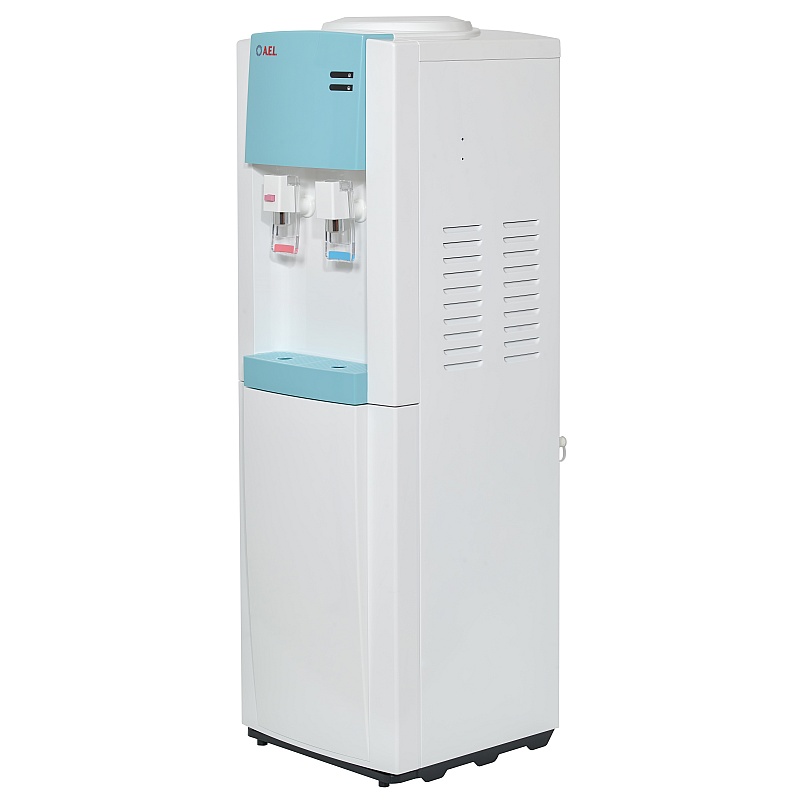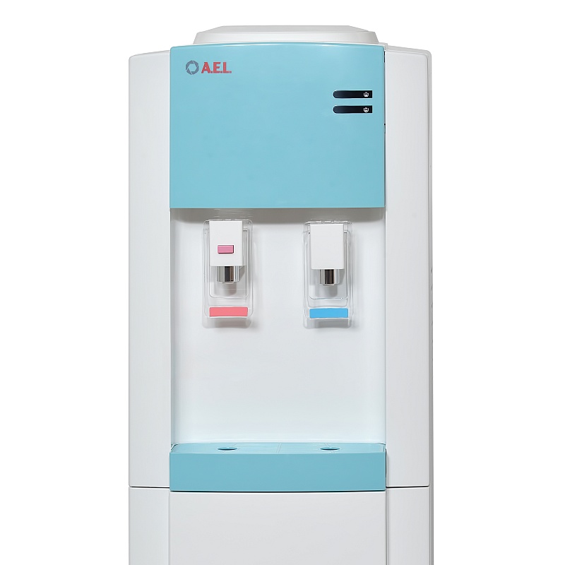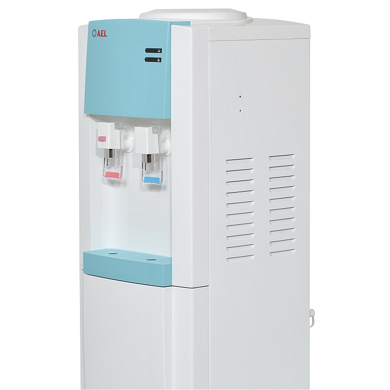 Бюджетный кулер с электронным охлаждением воды. Верхняя загрузка бутыли. Удобные краники "нажим кружкой" с внутренней резьбой, что позволяет при необходимости легко и быстро их менять. Кран горячей воды с кнопкой-защитой от случайного нажатия.