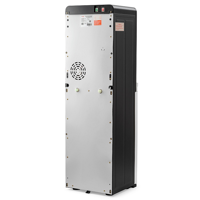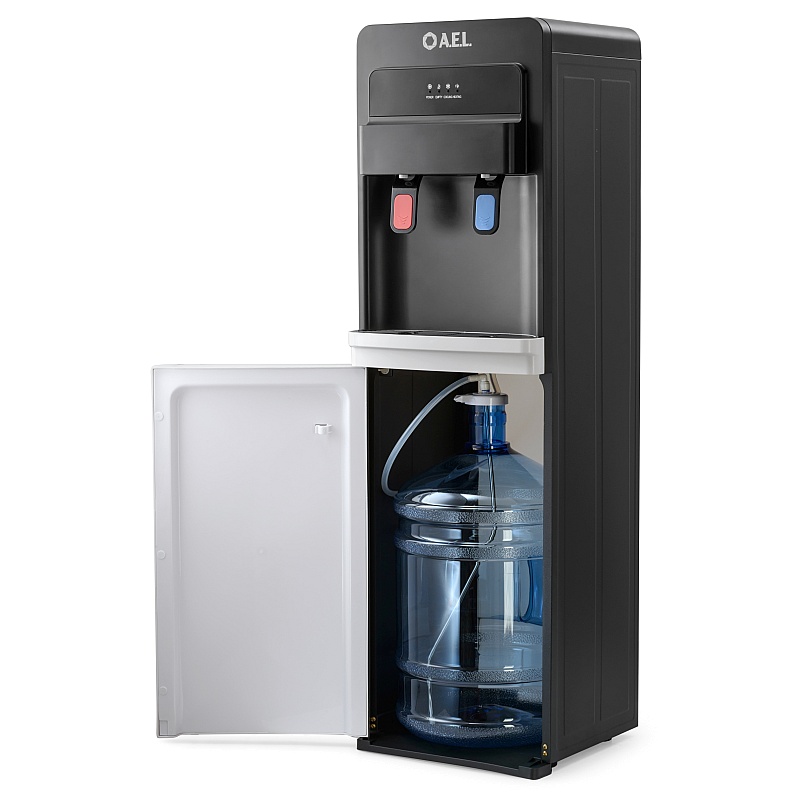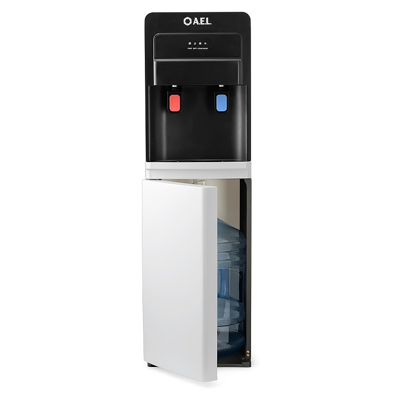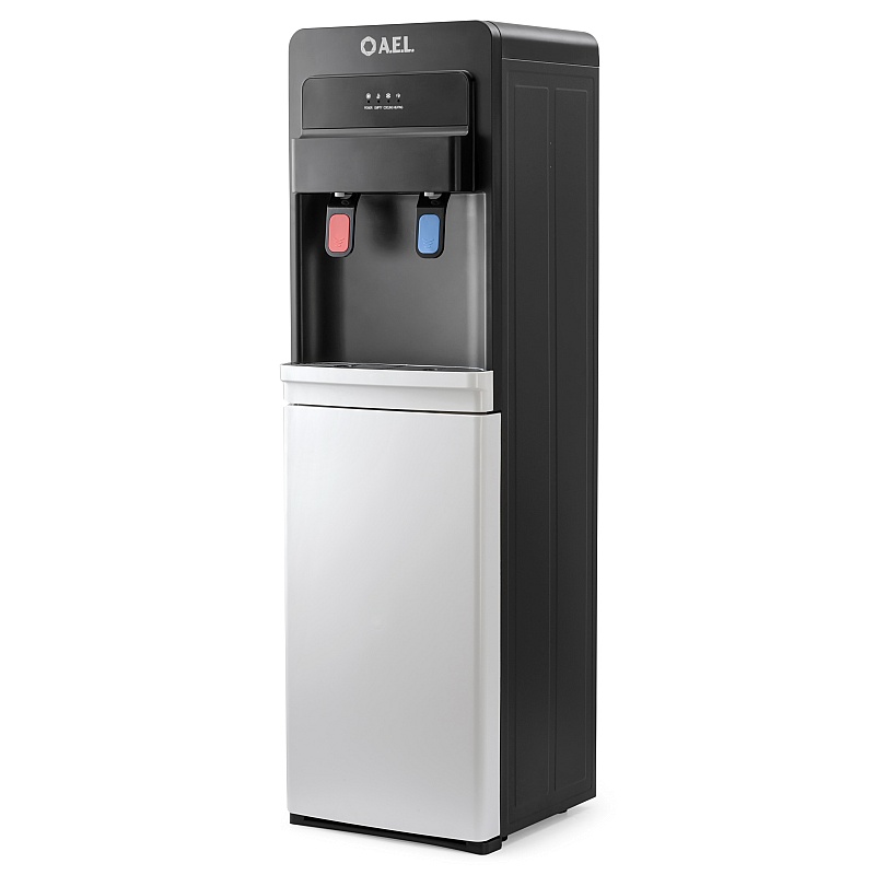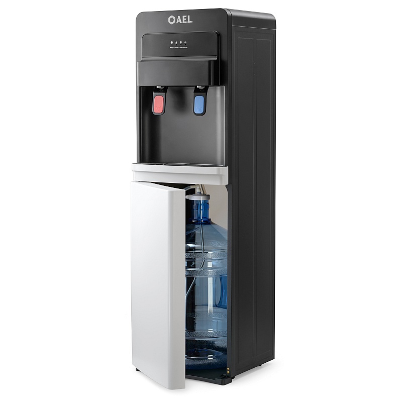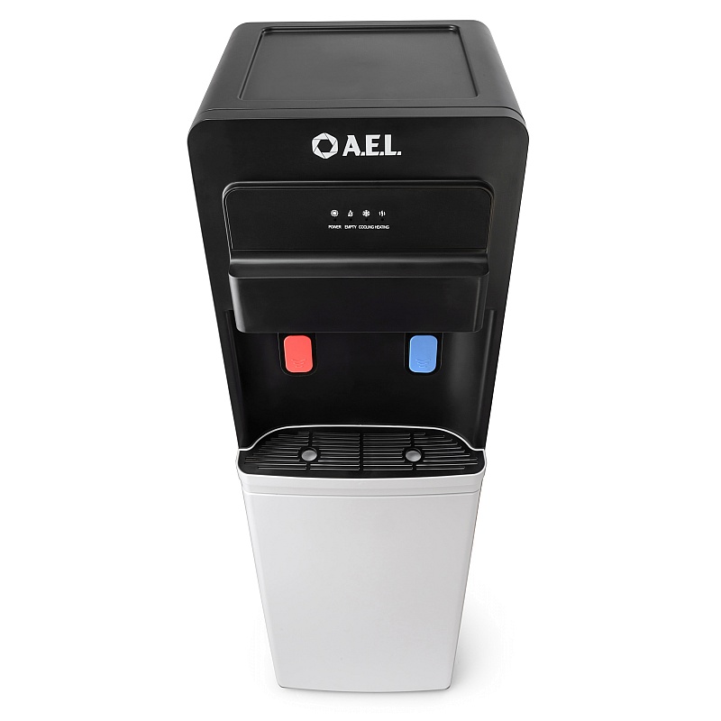 Бюджетный кулер с нижней загрузкой в черном цвете с белой вставкой. Электронное охлаждение. Цвет: черный с белой вставкой. Модель оснащена двумя краниками нажим кружкой (горячая/холодная). Стильный лаконичный дизайн отлично будет смотреться в офисе и дома.