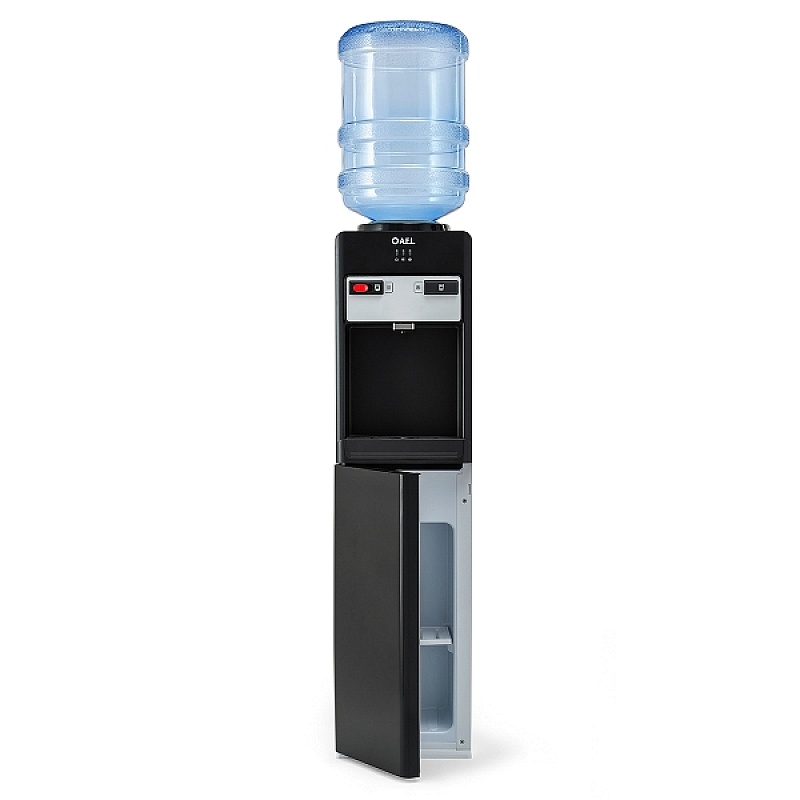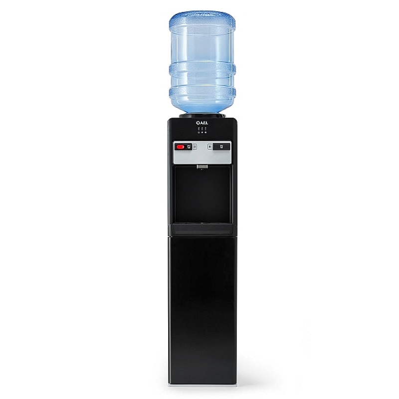 Кулер с электронным охлаждением, шкафчик 12 литров. Краники-клавиши, с защитой от детей на горячую воду. Цвет черный.