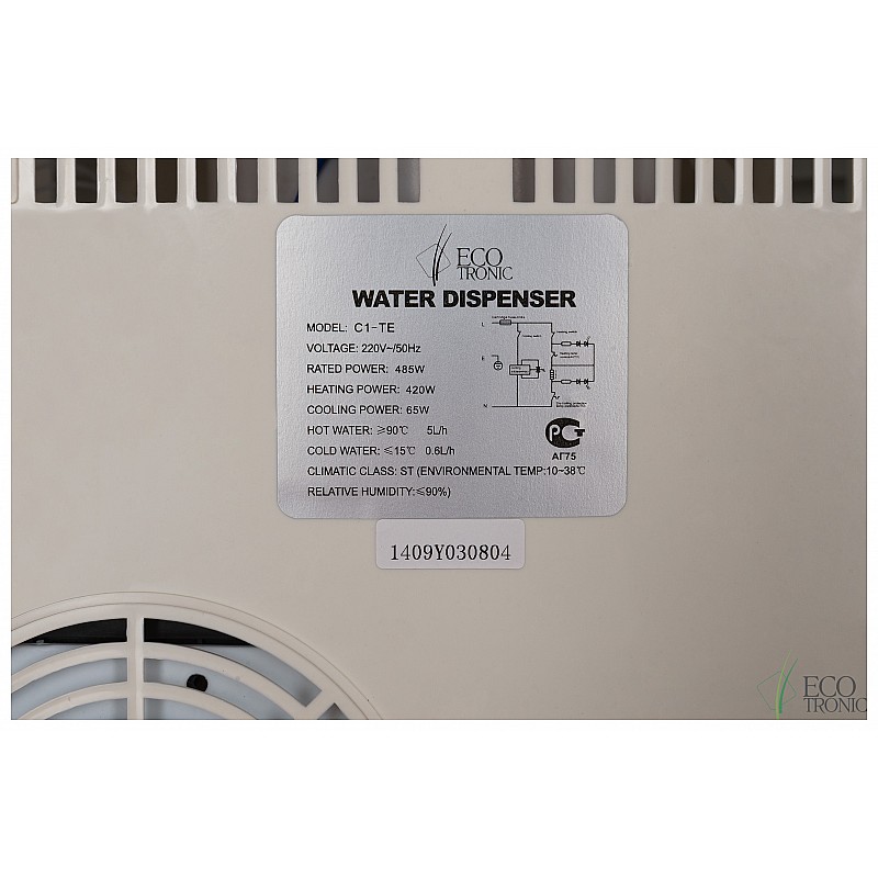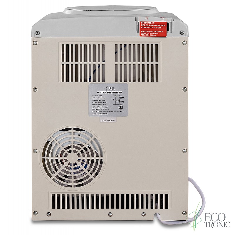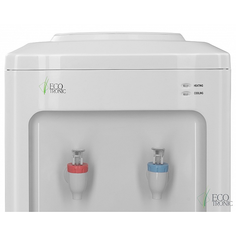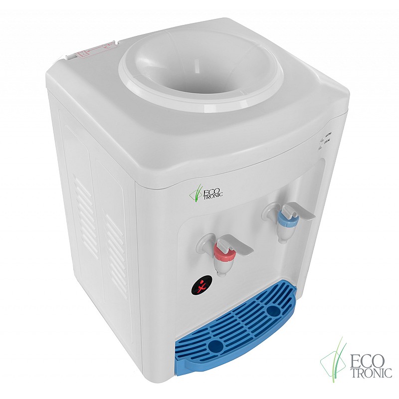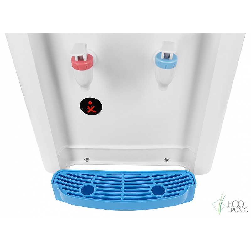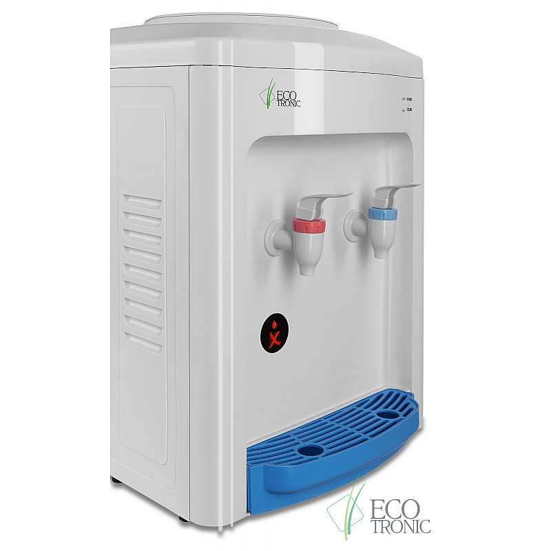 Оснащен электронной системой охлаждения. Аппарат имеет белый пластиковый корпус с голубым лотком каплесборником. Краны подачи воды "нажим рукой".