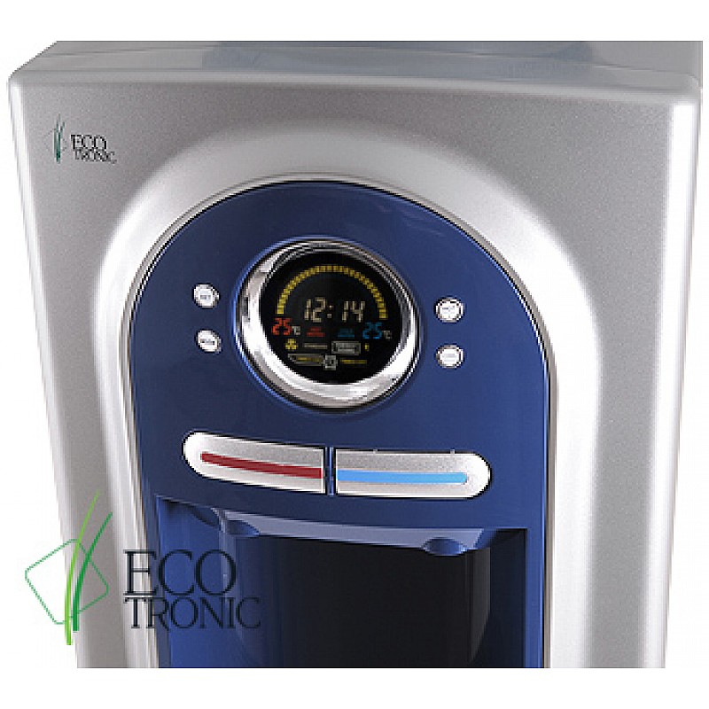 С холодильником на 16л из стильной и современной серии C2 от бренда Ecotronic, выполненная в серебритсом цвете с синей лакированной передней вставкой. Кулер оснащен встроенным 16-литровым холодильником и дисплеем с функцией управления температурой нагрева и охлаждения воды, которая подается с помощью механических клавиш.