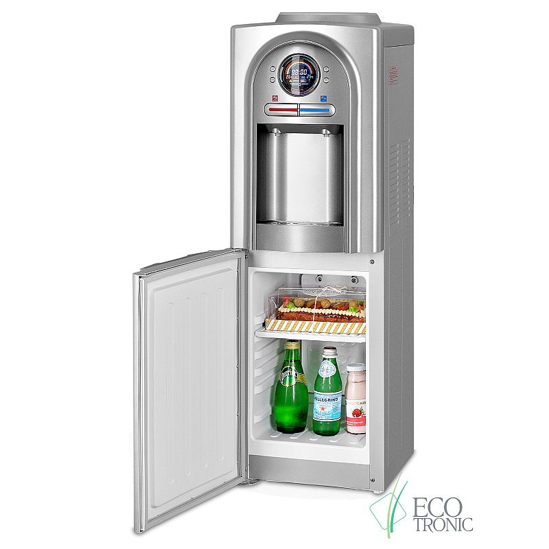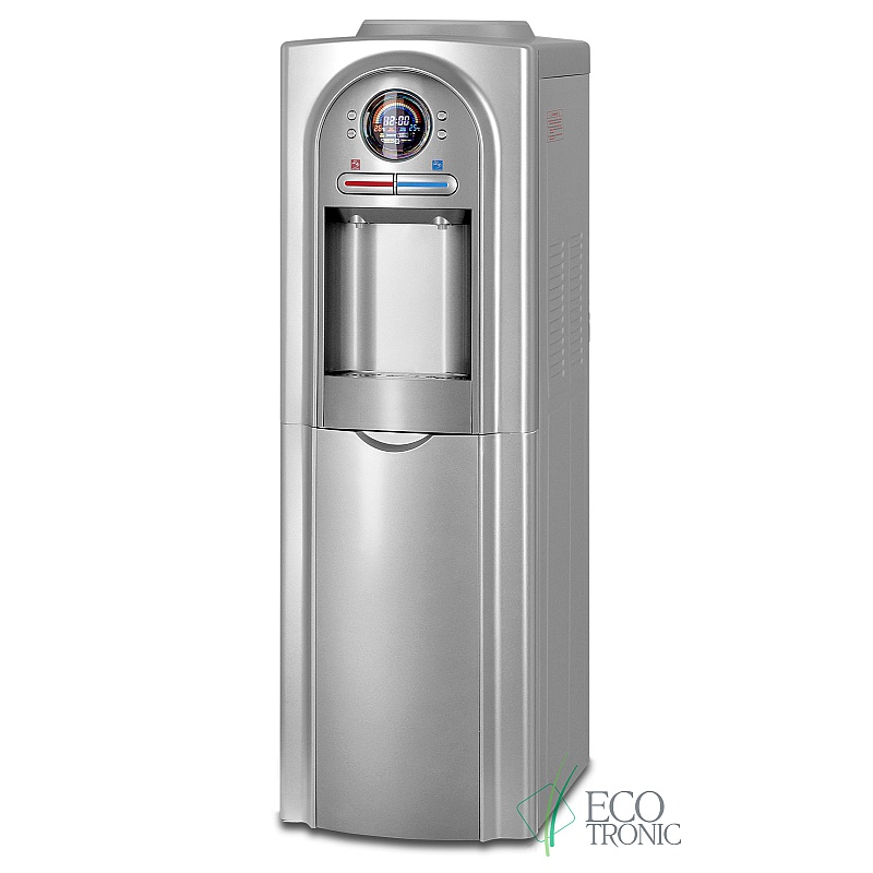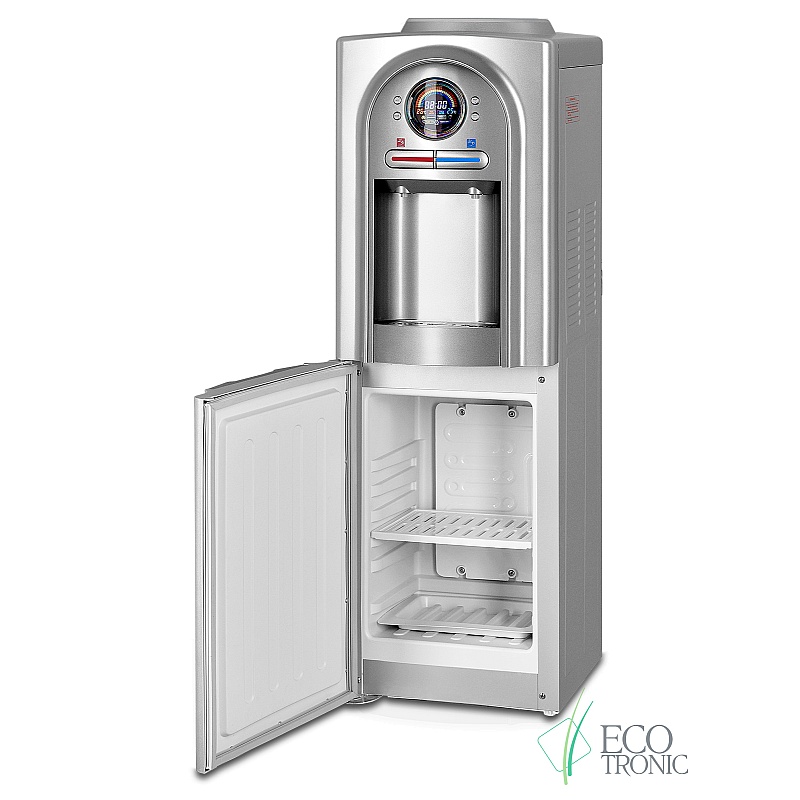 Красивый и современный Ecotronic C2-LFPM Grey с холодильником на 16л, корпус которого выполнен в мягком серебристом цвете, а на передней панели имеется черная лакированная вставка, обрамляющая рабочую зону краников. Встроенный холодильник небольшого объема. Дисплей с функцией управления температурой нагрева и охлаждения воды. ВНИМАНИЕ! температура холодной воды не регулируется. При любом значении температуры хол. воды на дисплее реальная температура будет одинаково низкой - от 5 до 10 гр. С.