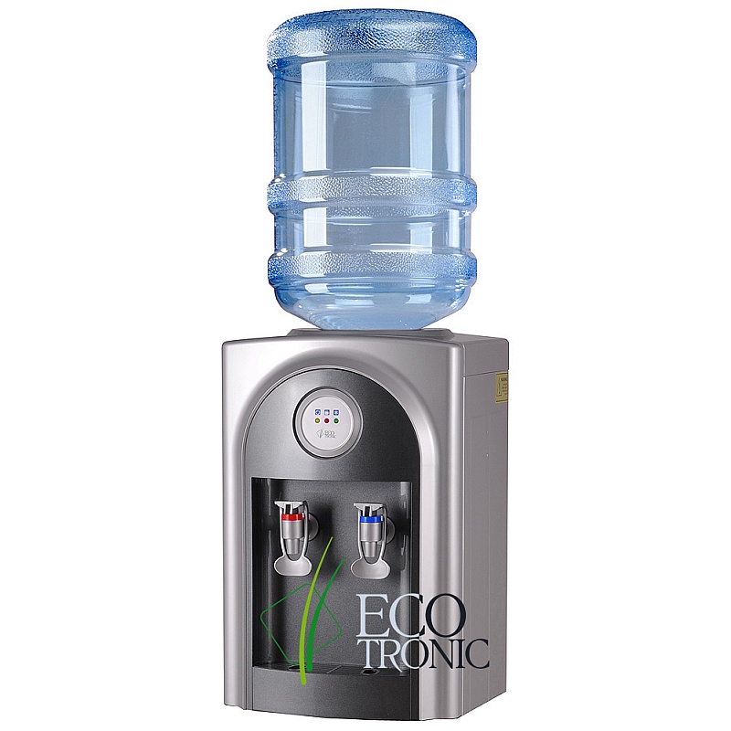 Настольный кулер с компрессорным охлаждением. Цвет корпуса серебристый, вставка серого цвета. Краны "нажим кружкой". Бак горячей воды разборный с внутренним нагревателем.