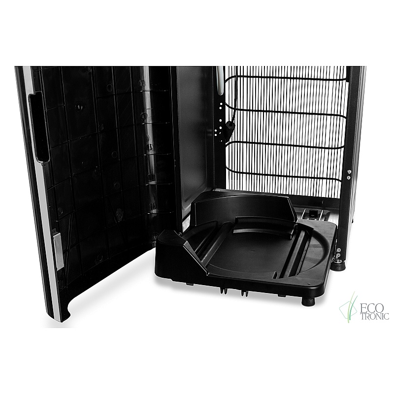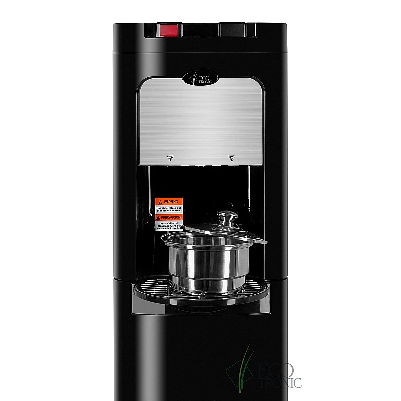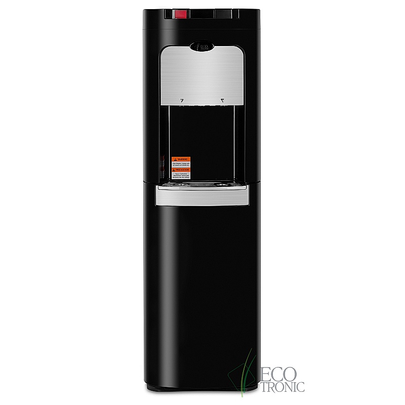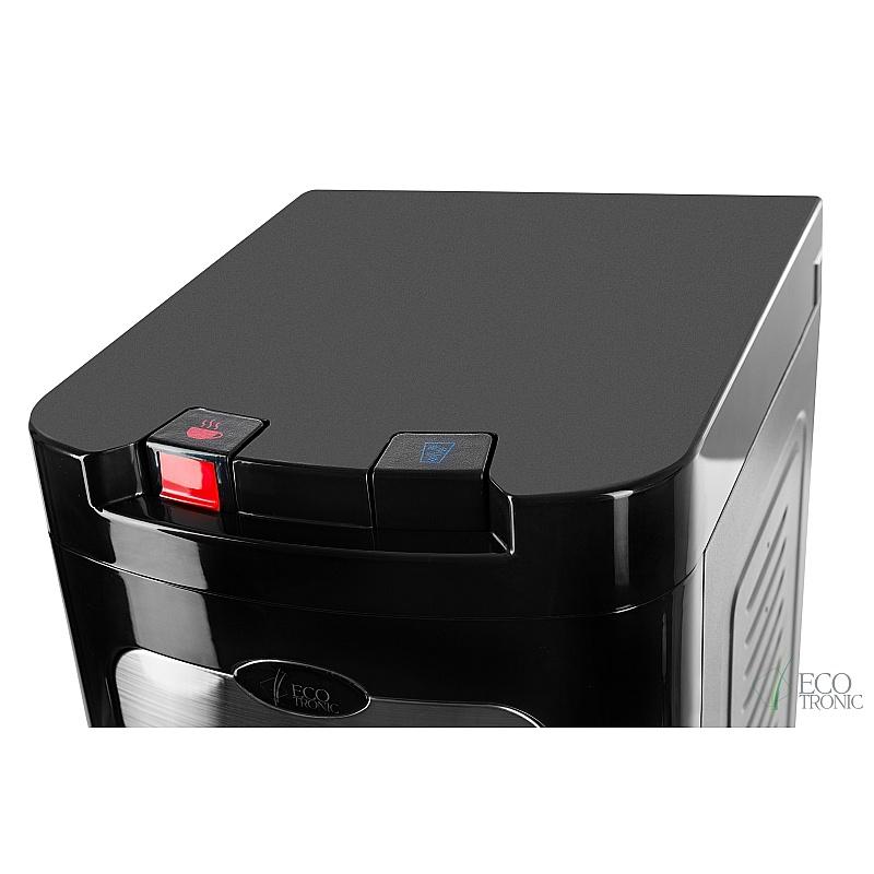 Модифицированная версия популярного кулера Ecotronic C8-LX с нижней загрузкой, но с выкатной полкой для удобства загрузки бутыли в корпус. Выполнен в черном полу-матовом цвете с никелированными вставками на передней панели. С возможностью подачи горячей, холодной и воды комнатной температуры. В аппарате установлена регулируемая заборная трубка с помповым типом фиксации. Для поднятия воды из бутыли используется электрическая воздушная помпа. Есть возможность установки увеличенного лотка для установки чайников и кастрюль.