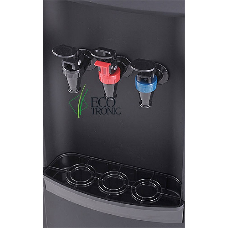 Характерной чертой модели является "антивандальный" корпус. Лицевые пластиковые панели черного цвета изготовлены с добавлением матового полиэстра, что придает поверхности бархатистую структуру. Три краника для подачи воды с подсветкой, на кране горячей воды установлена защита. Также кулер оснащен системой защиты от протечки бутыли. Установлен надежный компрессор.