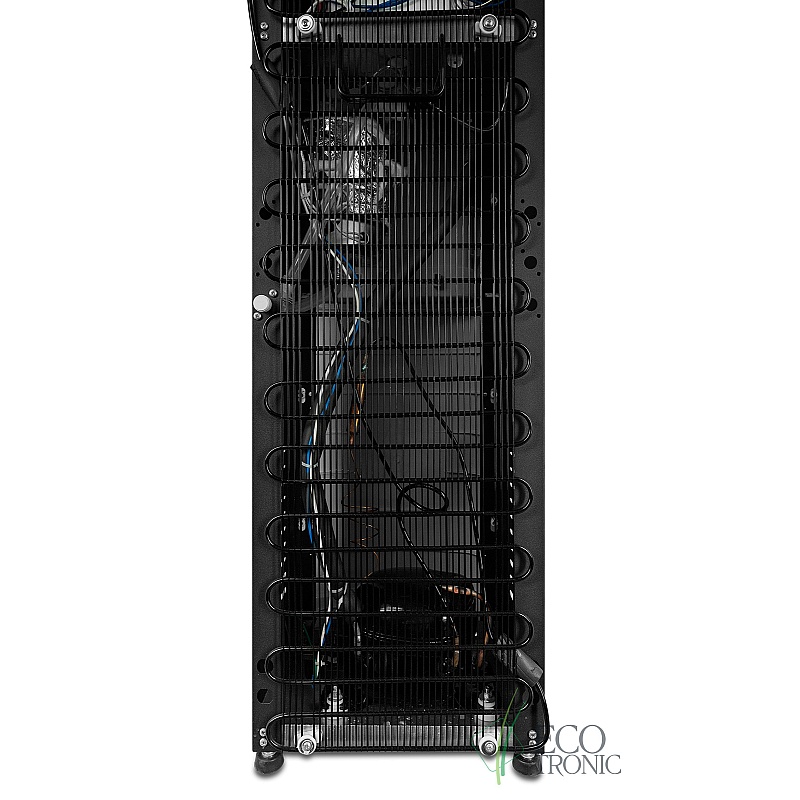 Кулер выполнен в тоне серебристый металлик с боковыми панелями и водоприёмной чашкой черного цвета. Модель позволяет наливать воду горячую, холодную и комнатной температуры воду, кран горячей воды оснащен защитой от случайного нажатия. Особенностью модели стала система защиты от протечек бутыли, даже при ее повреждении вода не прольется на пол.