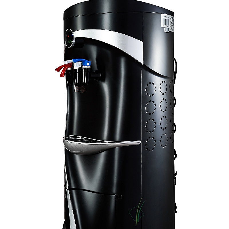 Электронное табло, краник для воды комнатной температуры. Шкафчик для хранения на 16 л. Три краника подачи воды. Краник горячей воды с функцией безопасности.