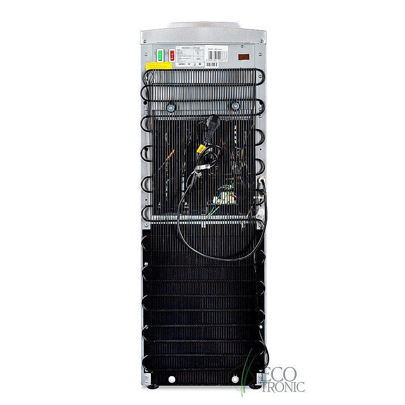 Стильная модель напольного исполнения с компрессорным охлаждением с холодильником на 16л выполнен в серебристом цвете со вставкой насыщенного красного цвета на лицевой панели и декоративной подсветкой вокруг индикации. На задней стенке размещены выключатели на охлаждение и нагрев воды.