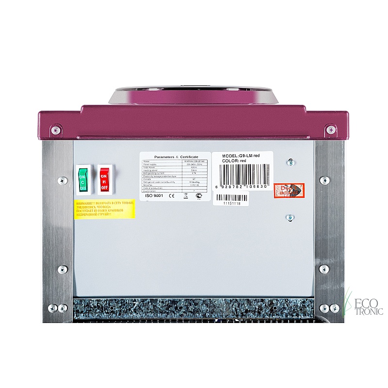 VIP-модель напольного кулера для воды с компрессорным охлаждением. Оснащена панелью индикации, отображающей текущую температуру холодной и горячей воды. Имеются отдельные выключатели на нагрев и охлаждение, защита на кнопке подачи горячей воды. Отличительной внешней чертой кулера G9-LM Red являются вставки мягкого красного тона на передней панели.