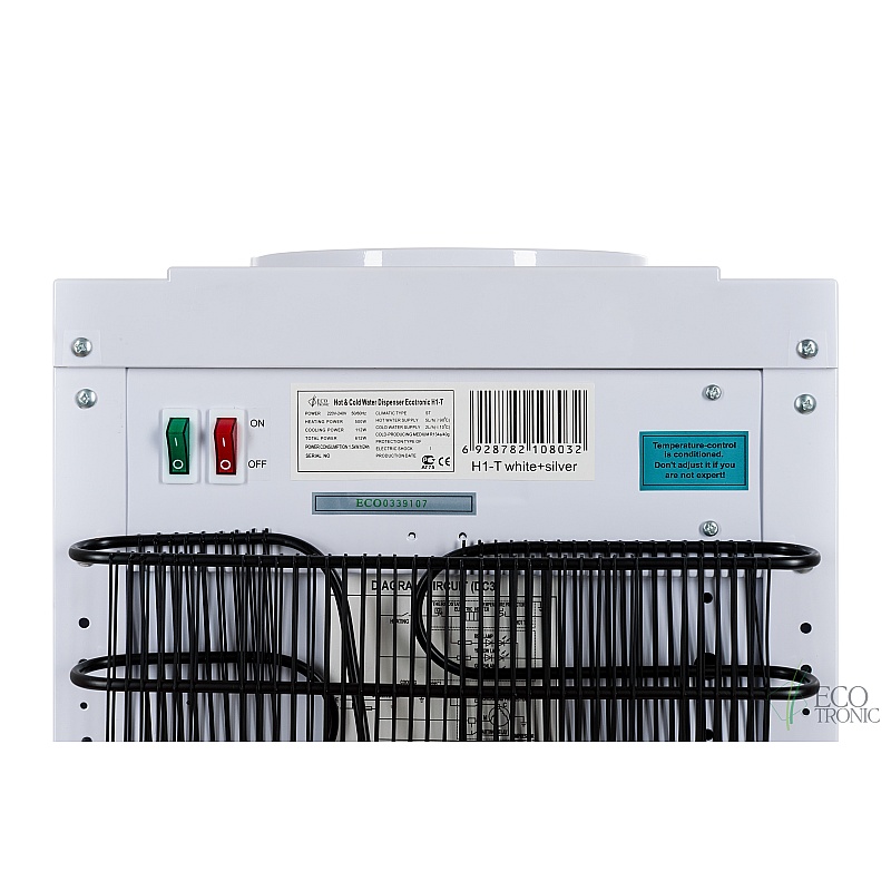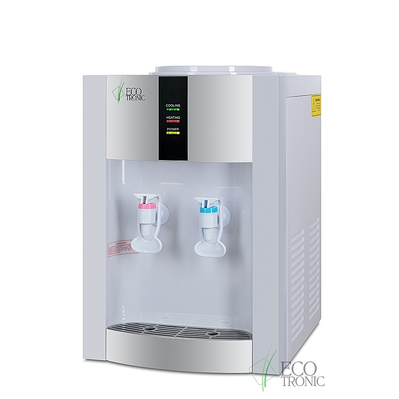 Белый кулер современного дизайна с компрессорным охлаждением, оснащен практичными кранами для подачи холодной и горячей воды типа "нажим кружкой". Характеризуется высокими производительными возможностями, сравнимыми с кулерами напольного исполнения