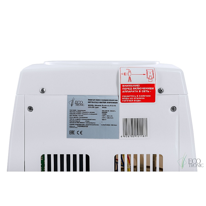 Недорогой кулер для воды с электронным охлаждением и нагревом воды. Краны типа "нажим кружкой".