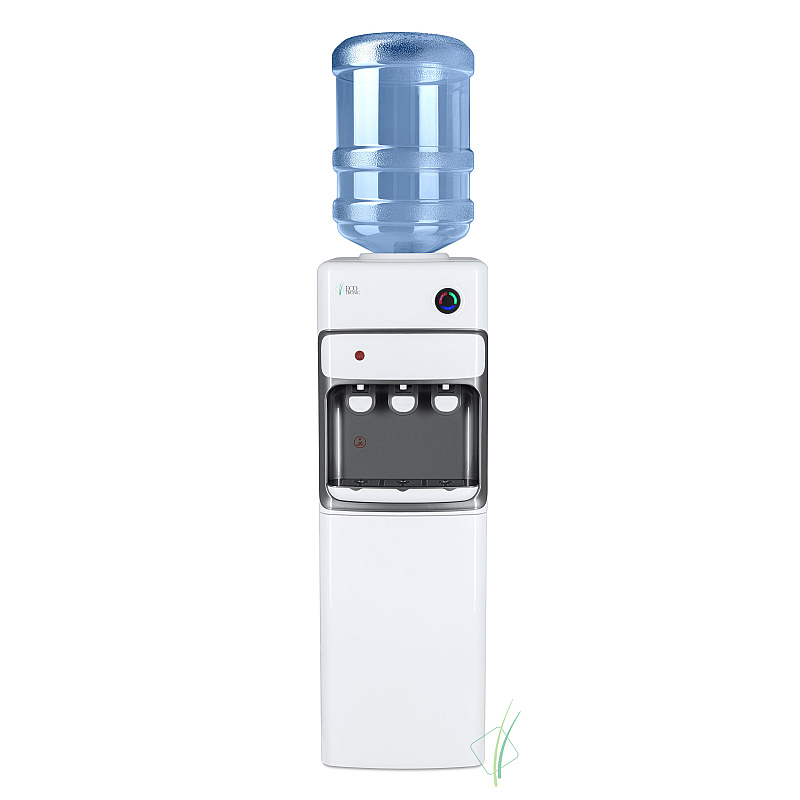 Напольный кулер с электронным охлаждением и шкафчиком в нижней части. Благодаря трем кранам подачи воды, каждый пользователь сможет выбрать подходящую для себя температуру. Защита на кране горячей воды предотвращает случайные ожоги и делает использование кулера безопасным для детей. Белый корпус кулера сочетается с серой вставкой на передней панели, что придает устройству стильный внешний вид. Светодиодные индикаторы работы удобно расположены на верхней части передней панели и позволяют быстро оценить текущий статус кулера. Этот напольный кулер с электронным охлаждением и удобными функциями будет отличным дополнением как в офисе, так и дома.