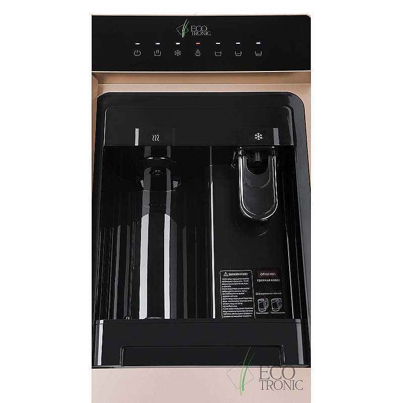 Аппарат с нижней загрузкой бутыли,и электронным охлаждением. Нагрев воды осуществляется при помощи компактного чайника, емкостью 1 литр. Интересное цветовое решение - золото с черным. Объем наливаемой воды, в чайнике регулируется кнопками на передней панели. Кран для холодной воды - нажим "кружкой". Преимуществом аппарата, является высокая производительность нагрева горячей воды, до 9 литров в час! Температура нагрева воды достигает - 99o С! Панель управления с возможностью отключения нагрева и/или охлаждения воды. Индикация режимов нагрева/охлаждения и отсутствия воды в бутыли. Защита от протечек. На боковой панели присутствуют отверстия под держатель для одноразовых стаканов.