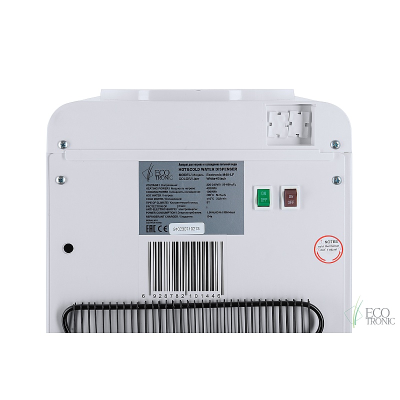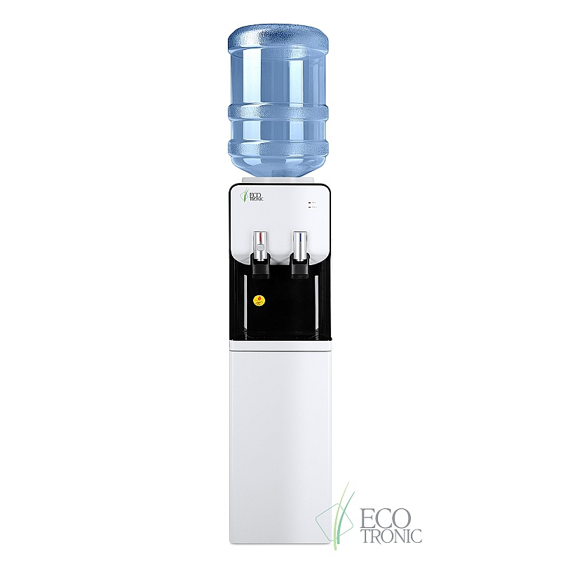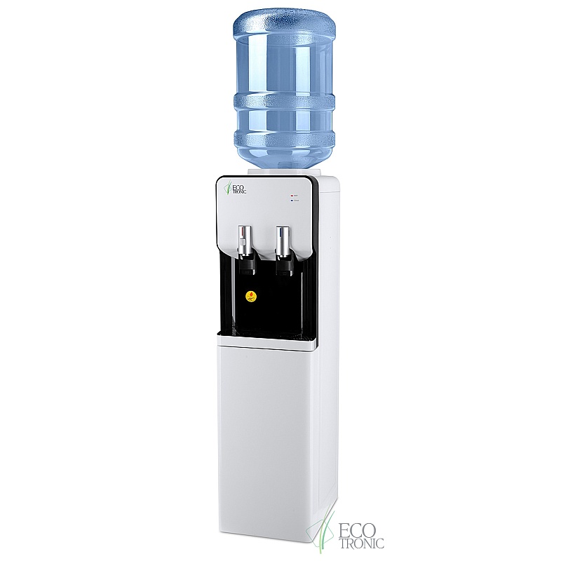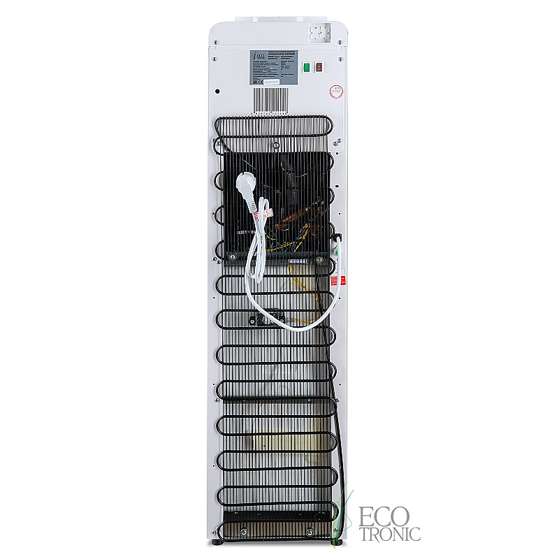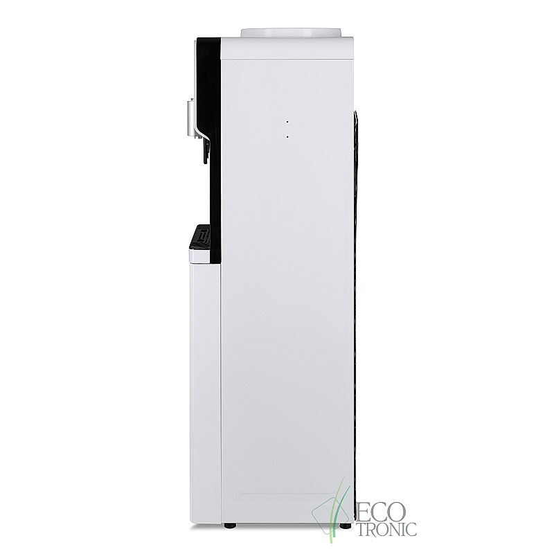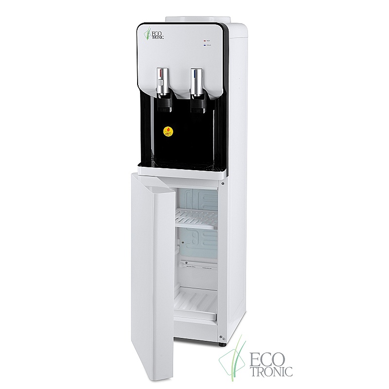 Компрессорное охлаждение. Долговечный и практичный цельный бак холодной воды без сварных швов. Стабильную работу системы охлаждения воды и холодильника обеспечивает дополнительный отдельный термостат холодильной камеры. Корпус белого цвета, передняя панель черная со светлой вставкой. Защита от детей на кране горячей воды. Индикация режимов нагрева, охлаждения и готовности воды. Краны "нажим кружкой".