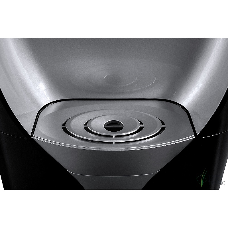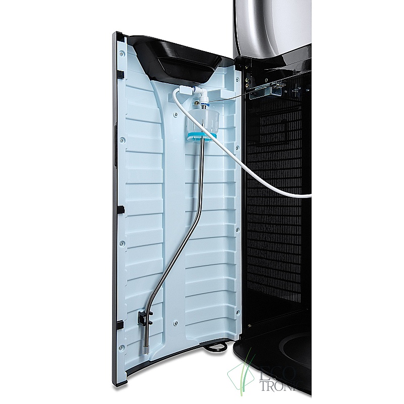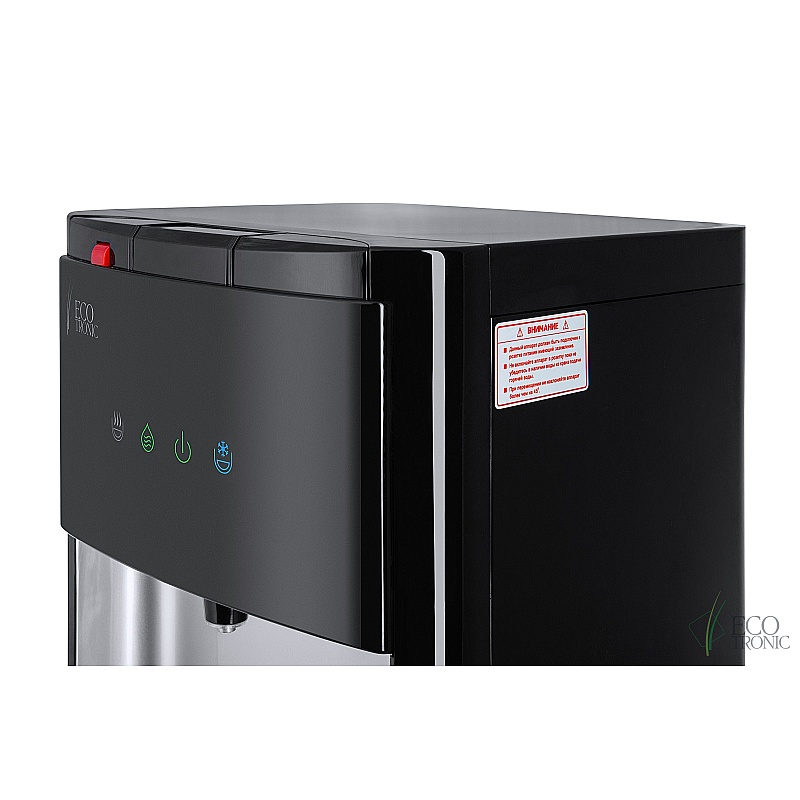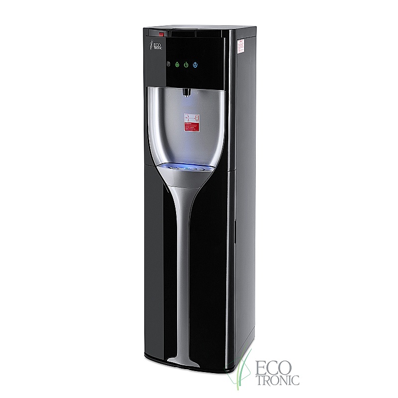 Кулер с компрессорным охлаждением и нижней загрузкой бутыли. Зона раздачи воды подсвечивается. Один излив, управление осуществляется с помощью трех клавиш сверху: горячая вода, холодная и комнатной температуры. Защита от случайного нажатия на горячей воде. На передней панели расположены индикаторы включения/выключения, режимов работы и отсутствия воды в бутыли. Гибкая трубка для забора воды без остатка. Пониженный шум от работы насоса.
