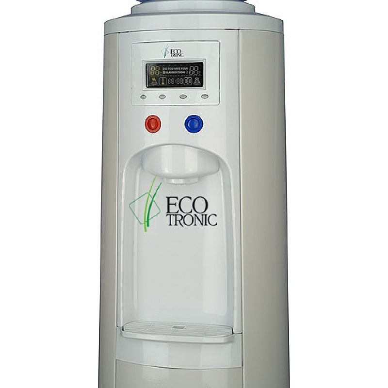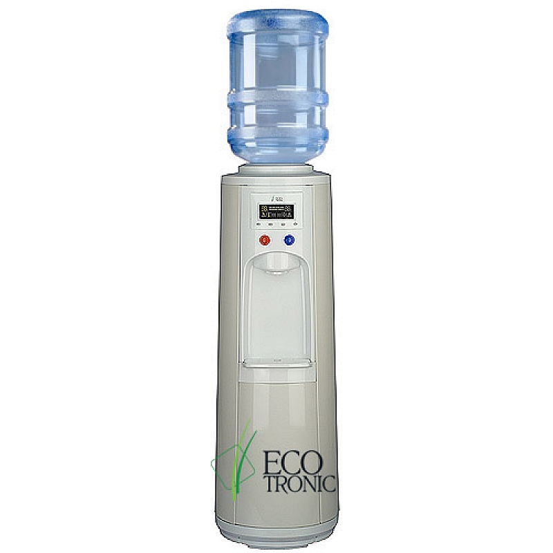 Кулер цилиндрической формы, корпус из нержавеющей стали выполнен в прекрасном сочетании белого и серого цвета. Модель имеет VFD-панель управления температурным режимом, а также ярко выраженные синим и красным цветом электромагнитные кнопки для налива воды. Модный кулер для дома и офиса.