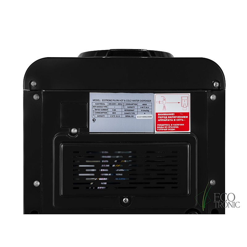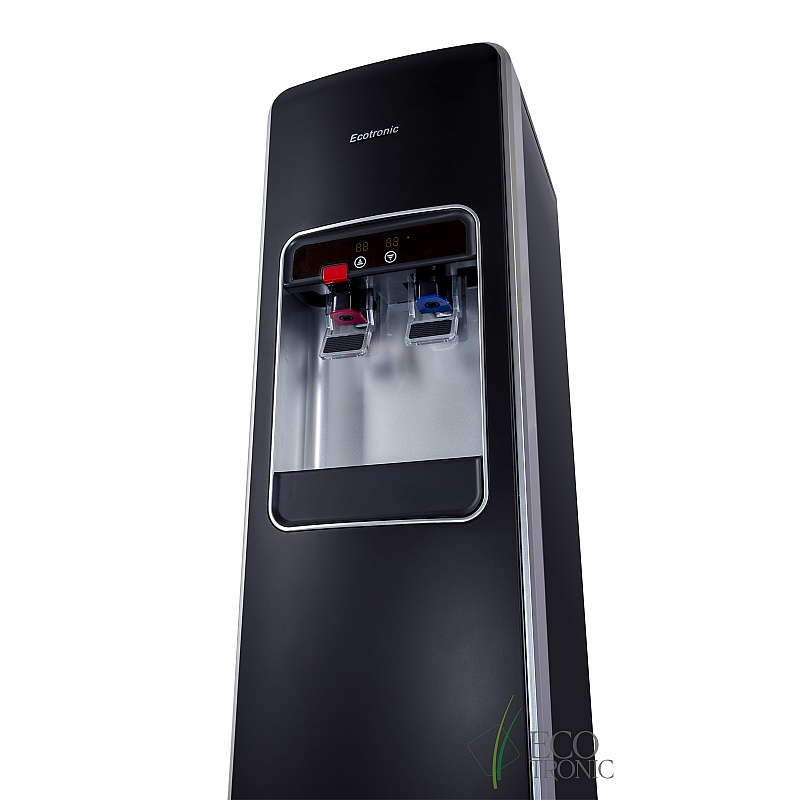 Компрессорное охлаждение. Температурный монитор с управлением. Краны нажим кружкой. Горячий кран с защитой от случайного нажатия (защита от детей).