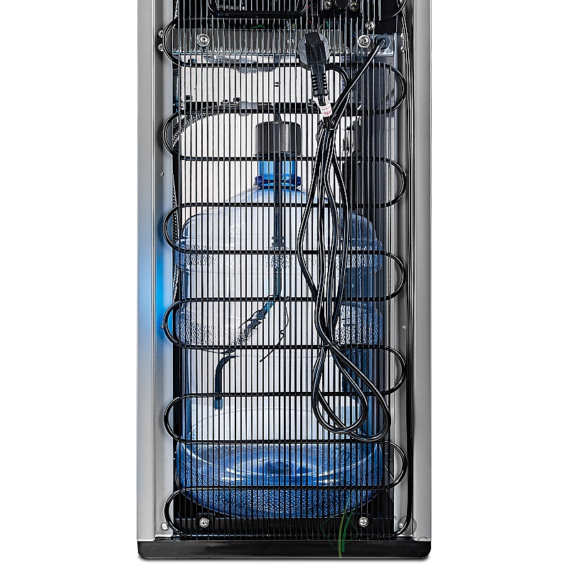 Кулер с нижней загрузкой и специальной заборной трубкой, что дает возможность производить забор воды из бутыли без остатка. Закачка воды в систему кулера осуществляется с помощью насоса. Возможность налива горячей, холодной и прохладной воды. Имеется подсветка области для забора воды, лоток со встроенным поплавком, сигнализирующим о заполнении. Клавиша горячей воды без защиты от случайного нажатия. Первый стакан воды из крана комнатной температуры может быть охлажденным.