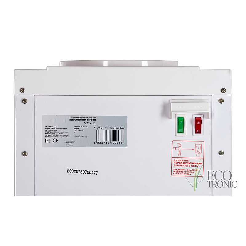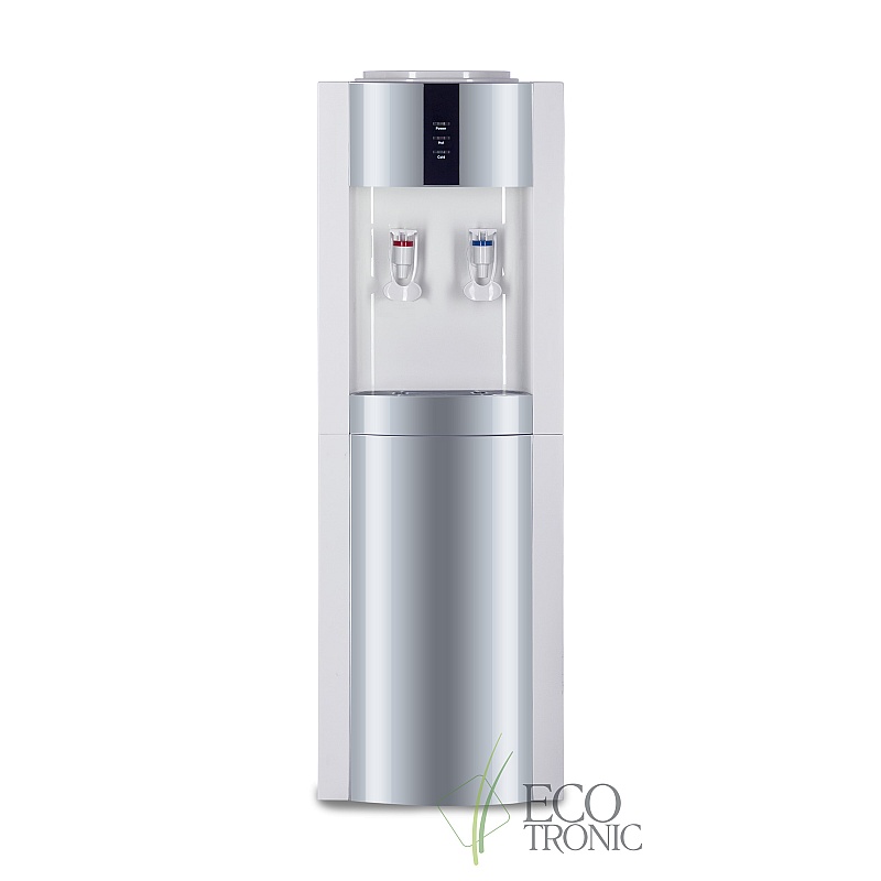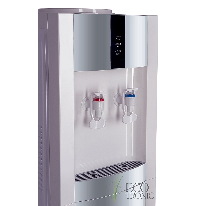 Аппарат имеет отличный внешний вид, оснащен электронной системой охлаждения. Лучшее соотношение цена/качество. Выполнен в белом цвете с серебристыми вставками. Недорого, красиво функционально. Бюджетный аналог классической модели Ecotronic H1. Тип кранов подачи воды - "Нажим кружкой".