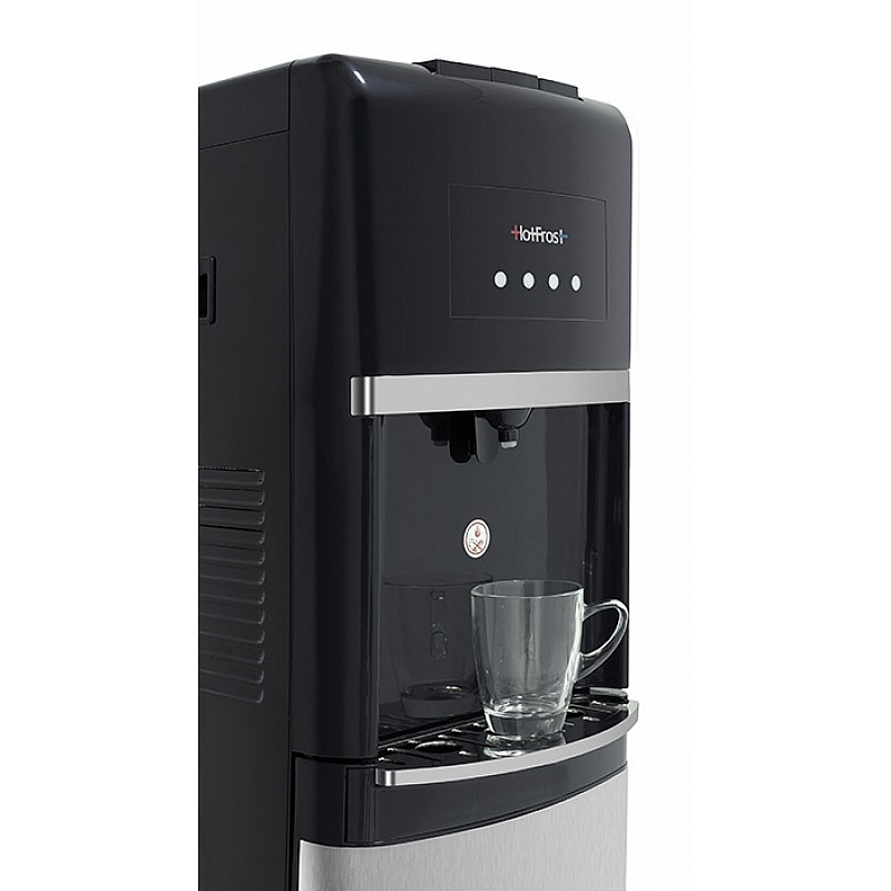 Напольный кулер с нижней загрузкой, оснащенный компрессорным типом охлаждения. Элегантный дизайн в сочетании черного цвета и "серебряных" вставок придает аппарату стильный и современный вид. Высокая функциональность, небольшие размеры и практичность делают эту модель отличным выбором для использования в офисных помещениях и дома. Устройство оборудовано тремя кранами подачи воды, а кран для горячей воды имеет защиту от ошпаривания, обеспечивая безопасность при эксплуатации кулера, что делает HotFrost 35AN абсолютно безопасным для ваших малышей.