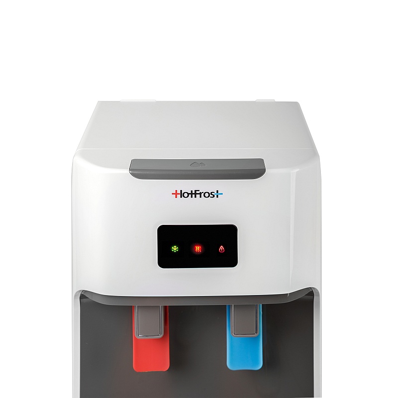 Нижняя загрузка бутыли защитит воду от прямых солнечных лучей и сохранит ее свежей и полезной. Замена бутыли не потребует больших усилий – достаточно приподнять ее на несколько сантиметров и переставить в шкафчик. С кулером HotFrost V115A можно не беспокоиться о микротрещинах бутыли и неплотно прилегающей пробке, которые могут стать причиной течи на кулере с верхней загрузкой. Апапарат белого глянцевого цвета можно использовать в дизайне интерьера в сочетании как с пастельными тонами, так с яркими насыщенными оттенками. В любой из комбинаций он будет выглядеть стильно и современно.