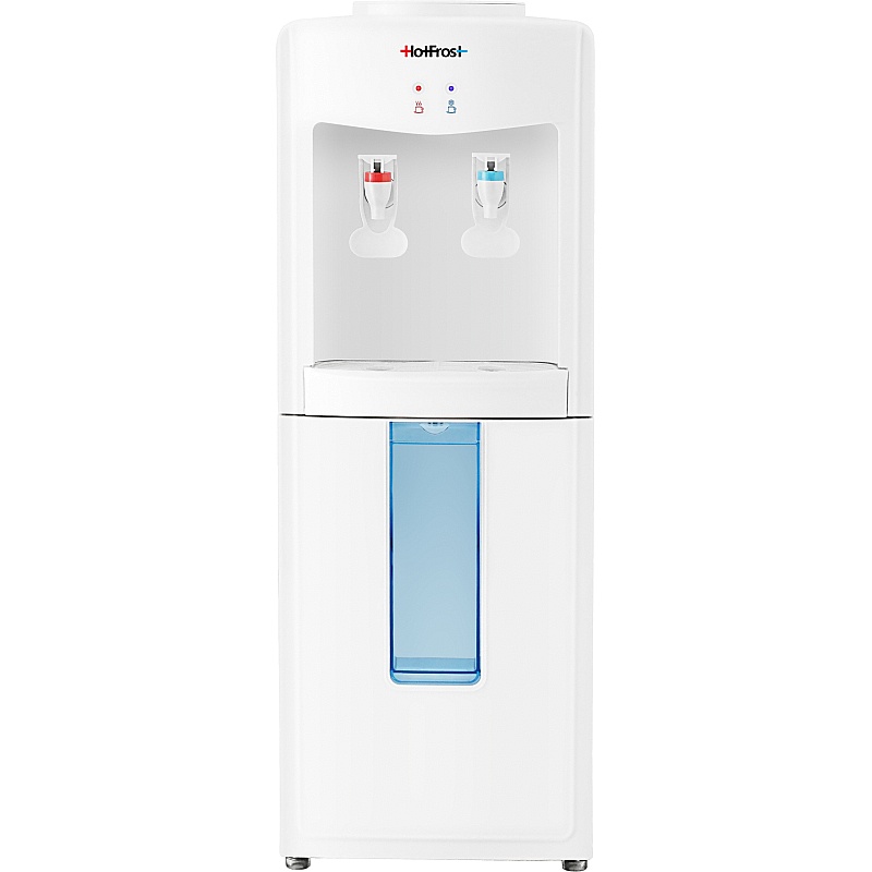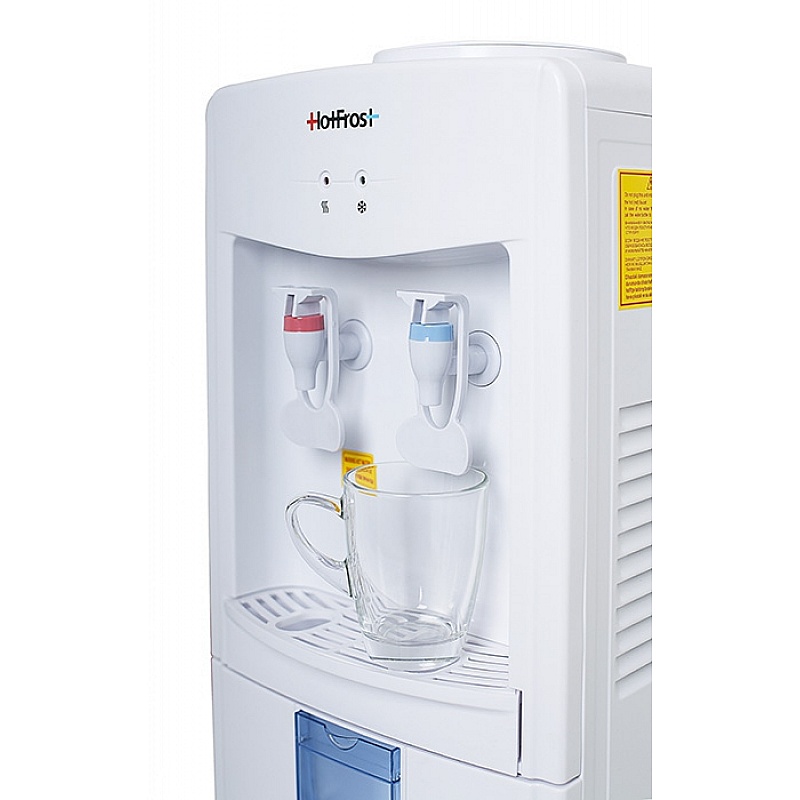Недорогой, но в то же время надежный кулер для воды, который станет идеальным решением для покупателя, делающего свой выбор в пользу выгодного сочетания «цена/качество». Для слива воды в кулере установлены краники нажимного типа, интуитивно понятные в использовании. Такой тип краников позволяет пользователю не напрягаться и не вникать в особенности работы с механизмом аппарата, а просто напиться воды, что, собственно говоря, и должен обеспечивать кулер. Наличие нажимных краников избавляет владельцев данной модели от излишних контактов с поверхностями кулера, что действительно очень гигиенично. Кроме этого, кулер оборудован откидным шкафчиком для хранения пластиковых стаканчиков. Эти факторы позволяют использовать этот кулер в местах массового скопления людей.