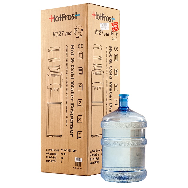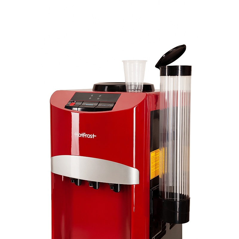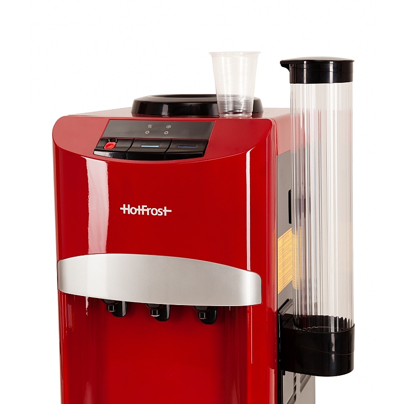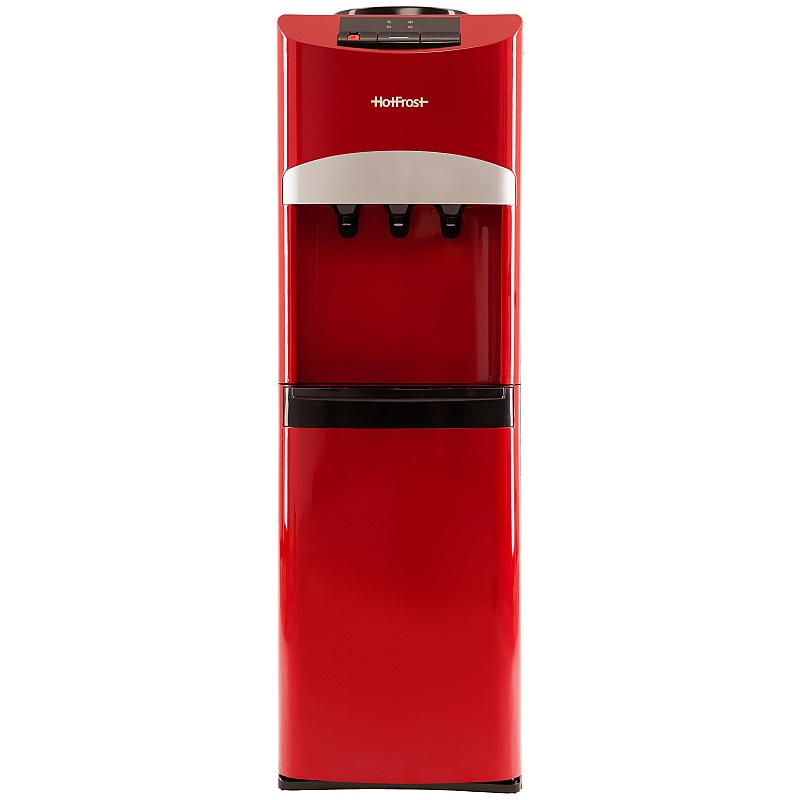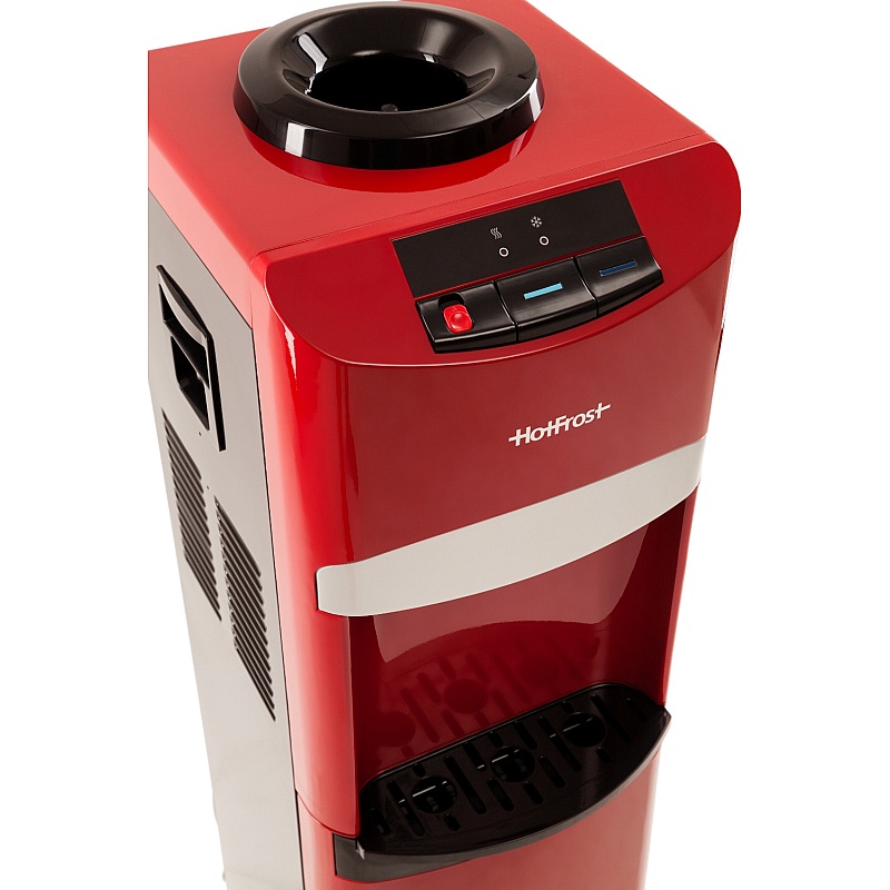 Модель изящно сочетает в себе два классических цвета — красный и черный. Одно упоминание этой пары цветов вызывает ассоциации с загадочными и красивыми любовными историями, авантюрами и таинственными приключениями. С технической точки зрения, HotFrost V127 Red ничем не отличается от своих предшественников. Он всё так же исправно нагревает и охлаждает воду, обеспечивая своих владельцев необходимым объемом чистой и вкусной воды. Приятная особенность этой модели — наличие третьей дополнительной кнопки для подачи воды. Эта кнопка отвечает за наполнение вашей кружки водой комнатной температуры. Также данный аппарат оборудован защитой от случайного слива горячей воды.