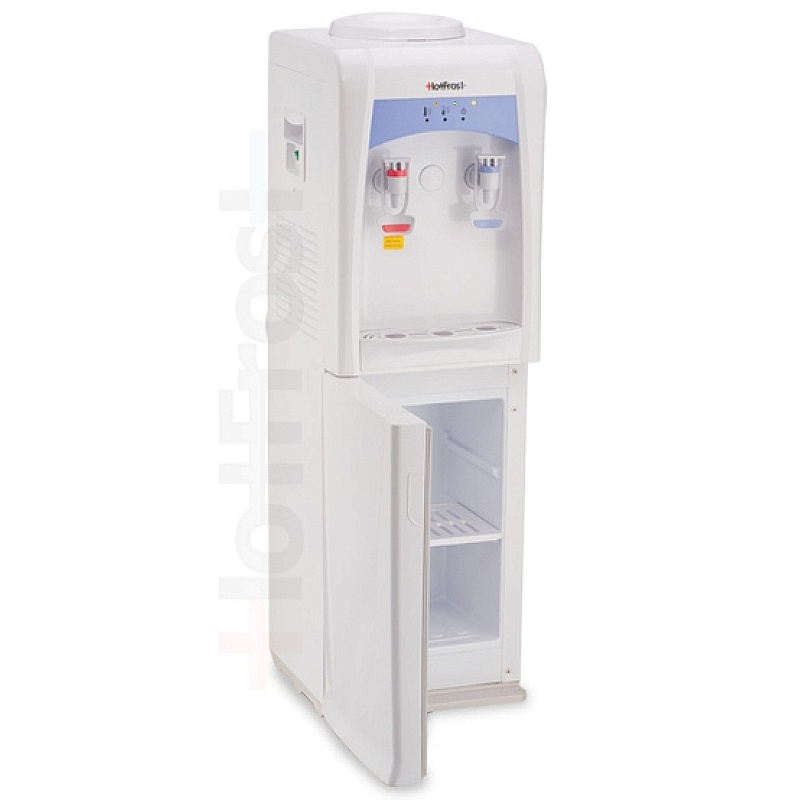 Эта модель кулера создана специально для настоящих любителей качественной и современной бытовой техники. Данный кулер не предназначен для того, чтобы быть элементом декора вашей квартиры или развлекать окружающих яркими кнопочками на панели. Этот аппарат серьезно настроен выполнять свою главную задачу — обеспечить всех желающих чистой и вкусной водой. Основная отличительная черта данной модели — встроенный шкафчик-холодильник. Кулер использует для охлаждения воды мощный и в то же время низкошумный компрессор. Время наполнения кружки горячей водой сокращено за счет трубки подачи воды увеличенного диаметра. Дополнительное удобство в процесс взаимодействия с кулером вносят краны, которые можно нажимать кружкой, и довольно высокий «рост» аппарата (почти метр). Объем шкафчика-холодильника — 20 литров.