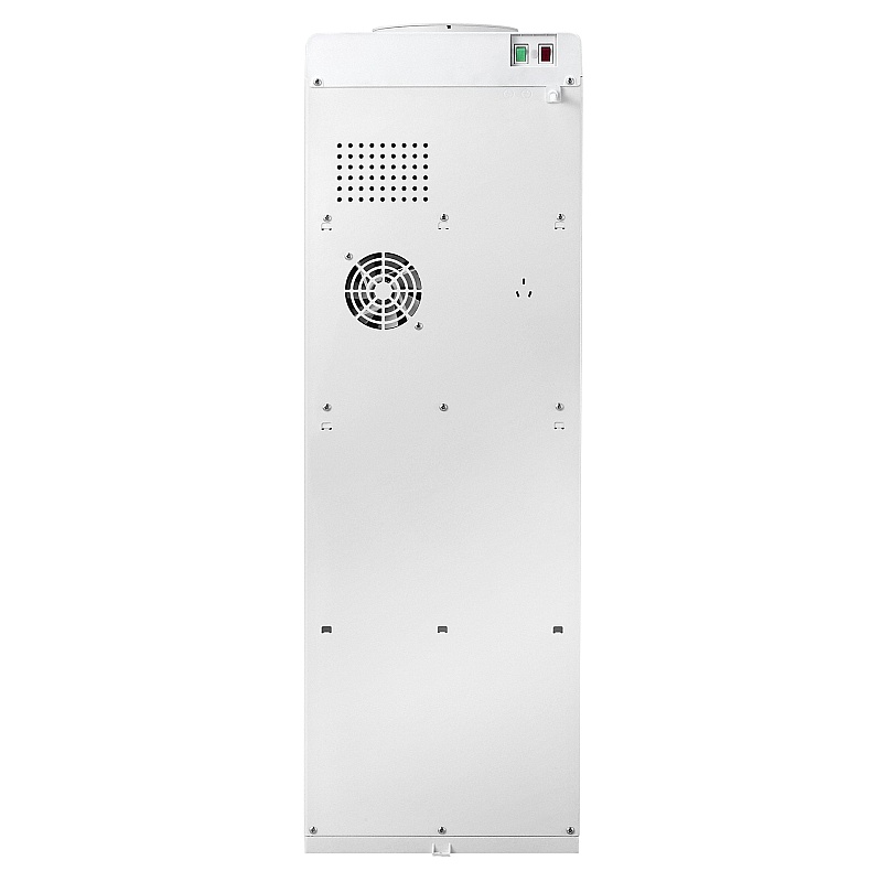 С лицевой стороны все привычные рабочие элементы кулера (краники, каплесборник) скрыты за стеклянной дверцей. Это обеспечивает дополнительную гигиеническую защиту зоны подачи воды от попадания пыли, бактерий и т.д. Дверца шкафчика снизу также имеет стеклянное покрытие, сродни холодильникам элитных серий.