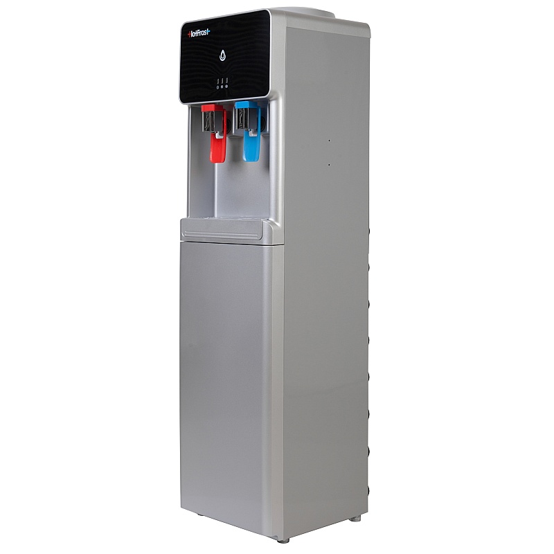 Напольный кулер для розлива питьевой воды. Идеальный внешний вид, современный дизайн и серебристый цвет корпуса лаконично подойдут к любому офису или небольшой кухне. Корпус аппарата изготовлен из высококачественного ударопрочного пластика с минимальным количеством соединительных стыков для комфортного ухода.