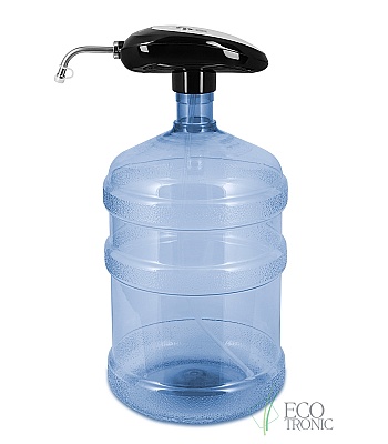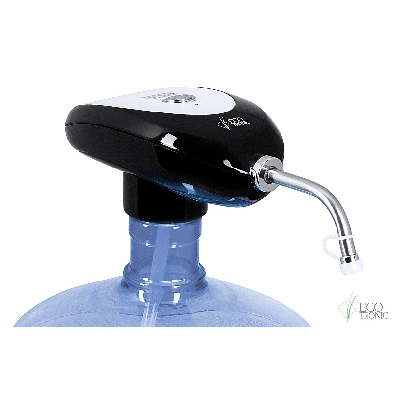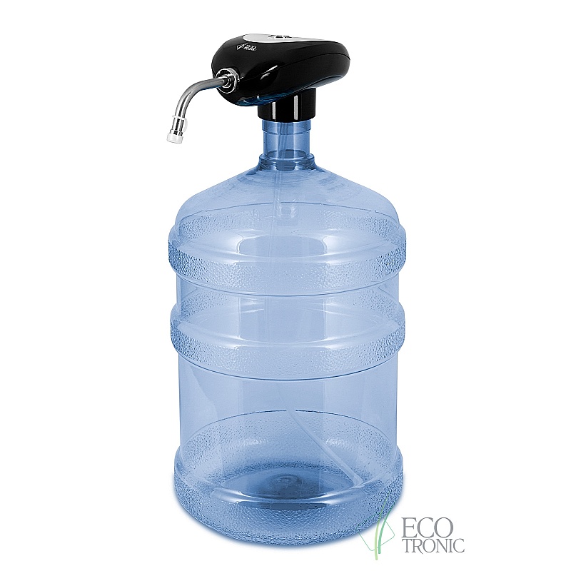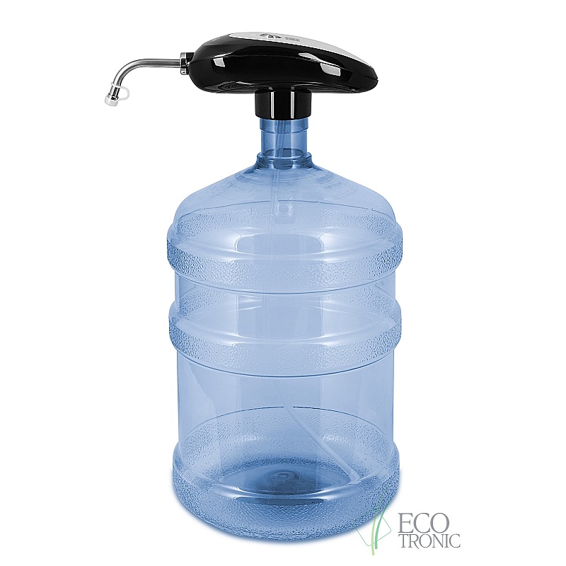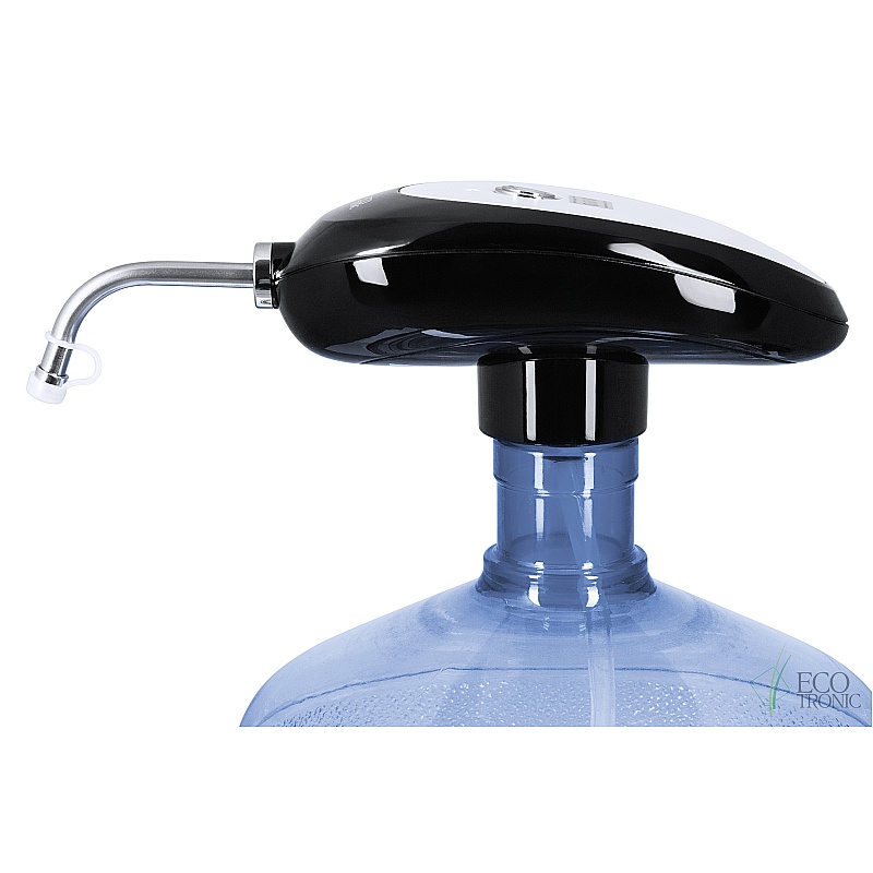 Больше 10 бутылей на одном заряде (внутри мощный насос и батарея). Заряжается с помощью адаптера. Простая установка на бутыль (без снятия крышки). Гибкая трубка забора воды (для забора воды без остатка). Индикатор заряда. Черно-белый цвет.