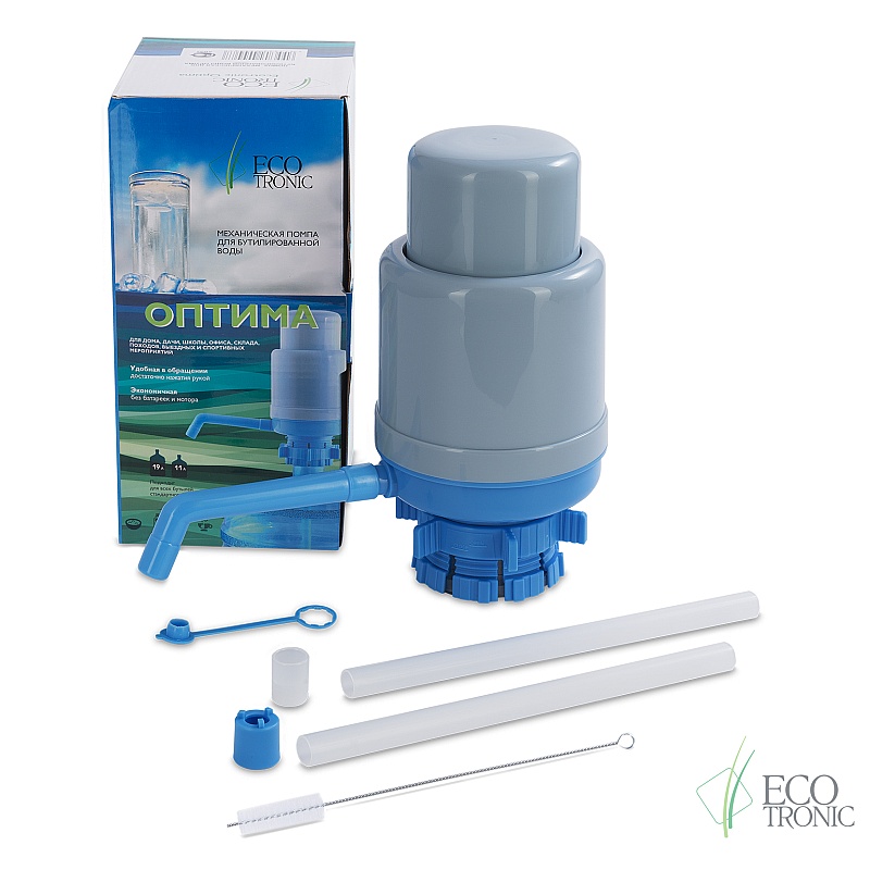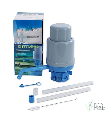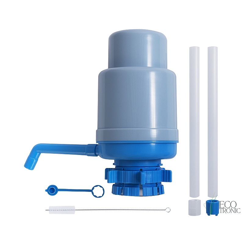 Классическая помпа PM-8081 произведенная специально для продажи в России и странах СНГ. Заборная трубка в два колена для бутылей 19 литров. Носик с заглушкой. Помпа является немного уменьшенным аналогом классической помпы Ecotronic Classic. Ёршик для прочистки носика в комплекте.