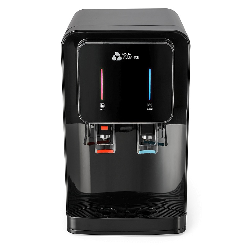 Обновленная модель A60s-TC от компании AquaAlliance корейского производства. Настольный проточный кулер для воды c компрессорным охлаждением и 4-х ступенчатой UF-системой очистки. Модель комплектована удобными краниками нажим чашкой c защитой от случайного нажатия. Бак холодной воды 3,8л. Бак горячей воды 1,5л. Черный глянцевый корпус. Комплектация: кран врезки, трубка ¼ 3 метра, фильтры 12U тип, инструкция. Тихий компрессор. Ступени очистки: осадочный (механический) фильтр, угольный префильтр, мембрана ультрафильтрационная, угольный постфильтр.
