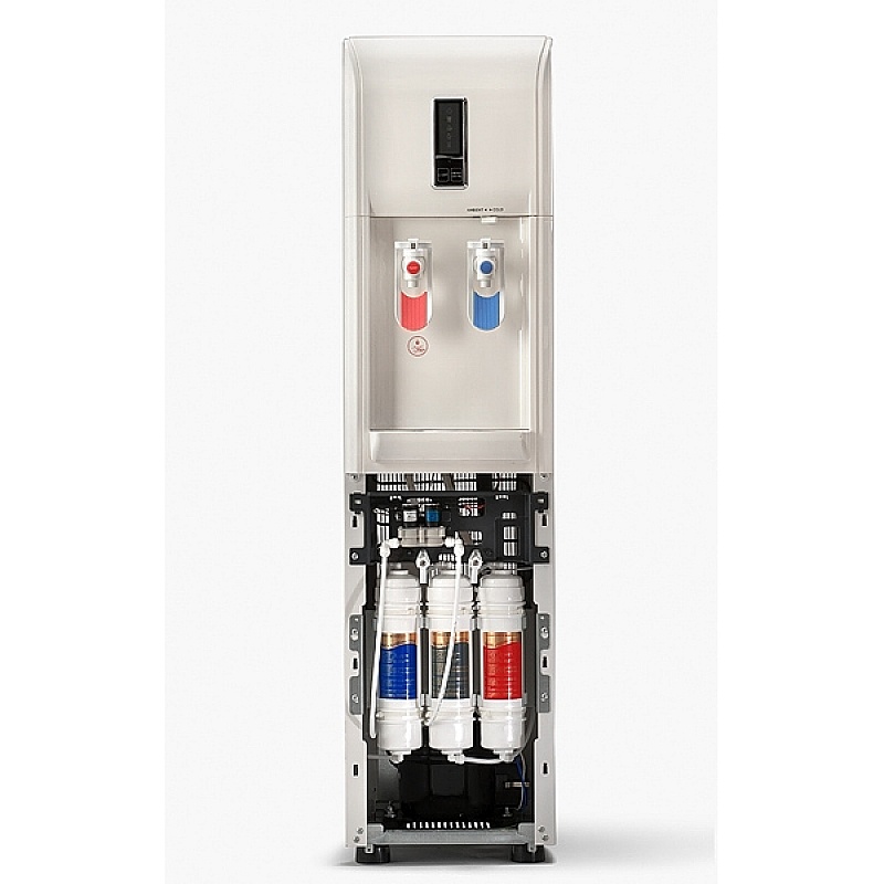 4-х ступенчатая тонкая фильтрация воды. Hочная подсветка, светодиодные индикаторы, низкий уровень шума, безопасные краны, защита от нагрева в отсутствие воды, двойная защита от перегрева, режим энергосбережения (световой индикатор, отключающий нагрев, когда в комнате темно). Осадочный фильтр (синий)- отделяет частицы. Угольный префильтр(темно-зеленый) - поглощант органические химические элементы. Угольный постфильтр (красный)- удаляет из воды газы и летучие пахучие вещества. Мембрана ультрафильтрационная(голубой) - удаляет бактерии, частицы ржавчины, коллоиды.