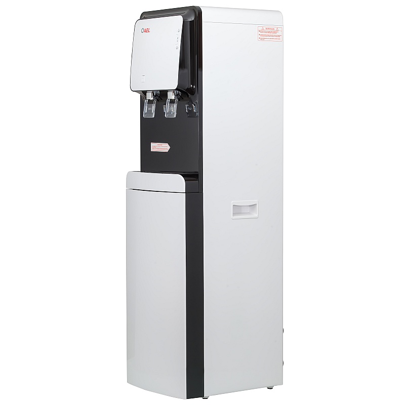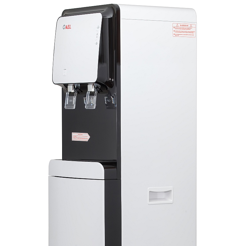 Напольный пурифайер с компрессорном охлаждением. Оснащён защитой от протечек, которая не требует подключения к электросети. Защита срабатывает при попадании воды на картридж-таблетку. Цвет белый с черной вставкой, черный лоток. Удобные краны "нажим кружкой". Защита от случайного нажатия на кране горячей воды. Пурифайер комплектуется фильтрами в типоразмере 12" дюймов с быстросъемом. Для замены фильтр в "колодце" поворачивается против часовой стрелки и вытаскивается.