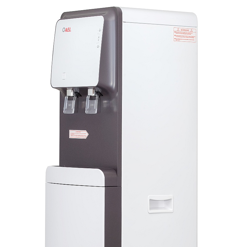 Напольный пурифайер с компрессорном охлаждением. Оснащён защитой от протечек, которая не требует подключения к электросети. Защита срабатывает при попадании воды на картридж-таблетку. Вставки серого цвета, белый корпус. UF-фильтрация. Удобные краны "нажим кружкой". Защита от случайного нажатия на кране горячей воды. Пурифайер комплектуется фильтрами в типоразмере 12" дюймов с быстросъемом. Для замены фильтр в "колодце" поворачивается против часовой стрелки и вытаскивается.