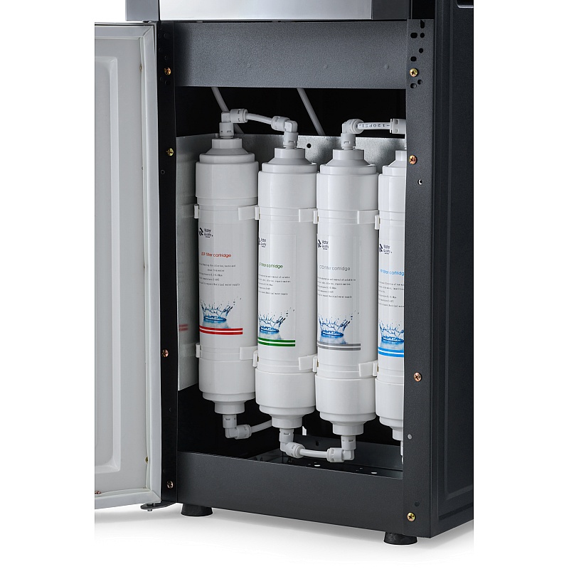 Цвет черный с серебристыми вставками, боковые панели черного цвета. Ультрафильтрация, используется 4 фильтра: Aquaalliance POS-C, Aquaalliance PRE-C, Aquaalliance SED-C, Aquaalliance UFM-C. Для того чтобы аппарат производил воду постоянного высокого качества, необходимо регулярно производить замену фильтров. Модель укомплектована удобными краниками типа "нажим кружкой" с защитой от случайного нажатия на горячую воду. Имеет дополнительную защиту от перелива воды в накопительном баке. Отличный бюджетный вариант для небольшого офиса или квартиры. Четыре ступени очистки.