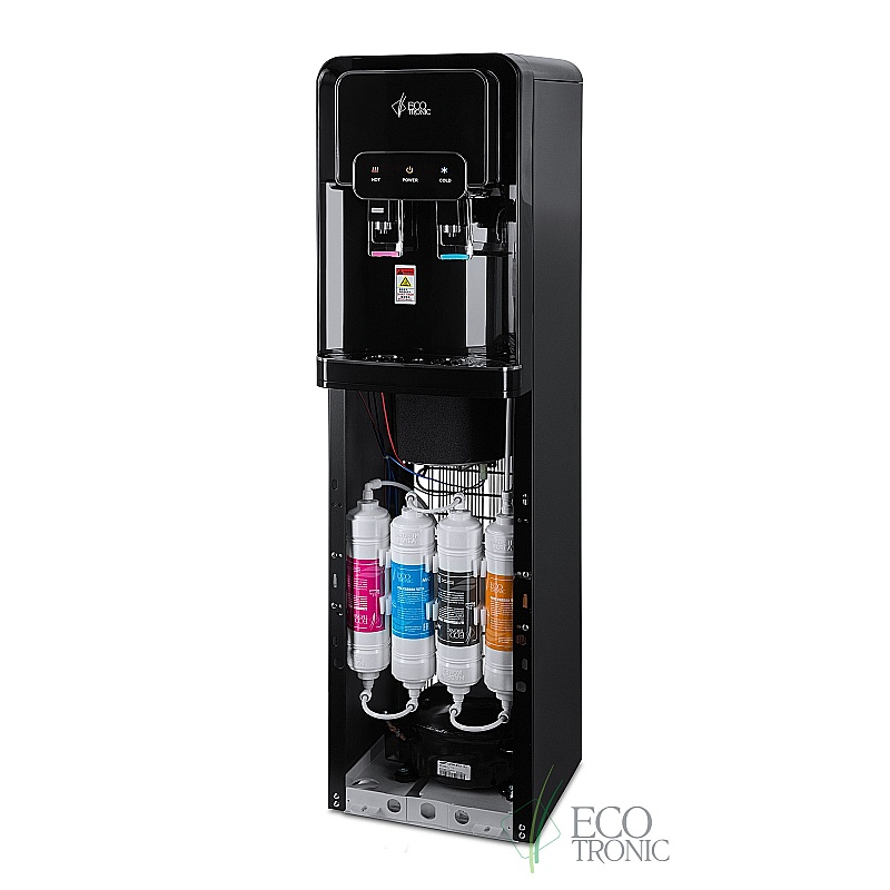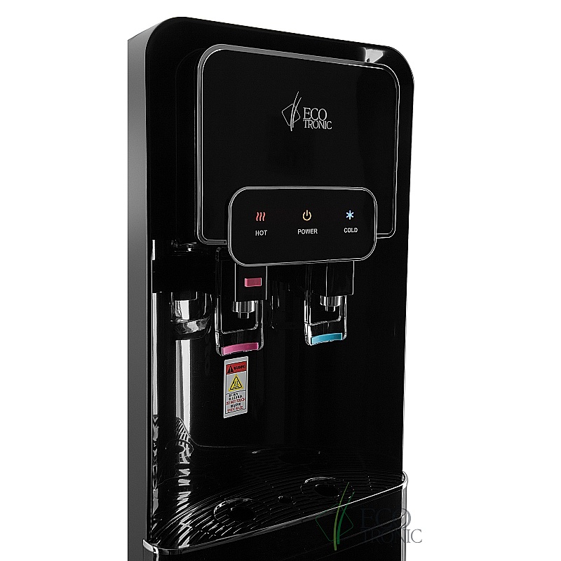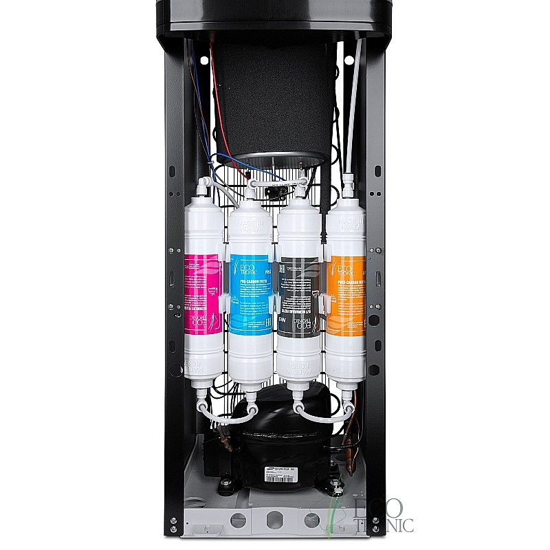 Напольный корейский пурифайер с ультрафильтрацией в черном цвете. Баки холодной воды и горячей воды - 7 л. Надежная мощная система нагрева в 770 Вт. Защита от случайного нажатия на кране горячей воды. Краны типа "нажим кружкой". Выключатели нагрева и охлаждения на задней стенке корпуса.
