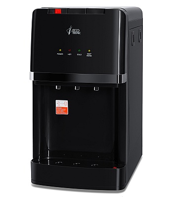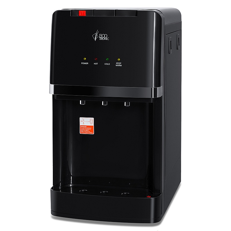 Настольный пурифайер с ультрафильтрационной системой очистки воды и электронным охлаждением. Стильный дизайн. Три крана типа "клавиши": подачи горячей воды с защитой от детей, холодной воды и подачи воды комнатной температуры из бутыли. Индикация работы пурифайера, нагрева и охлаждения воды. Корпус черного цвета с серебристым декором.