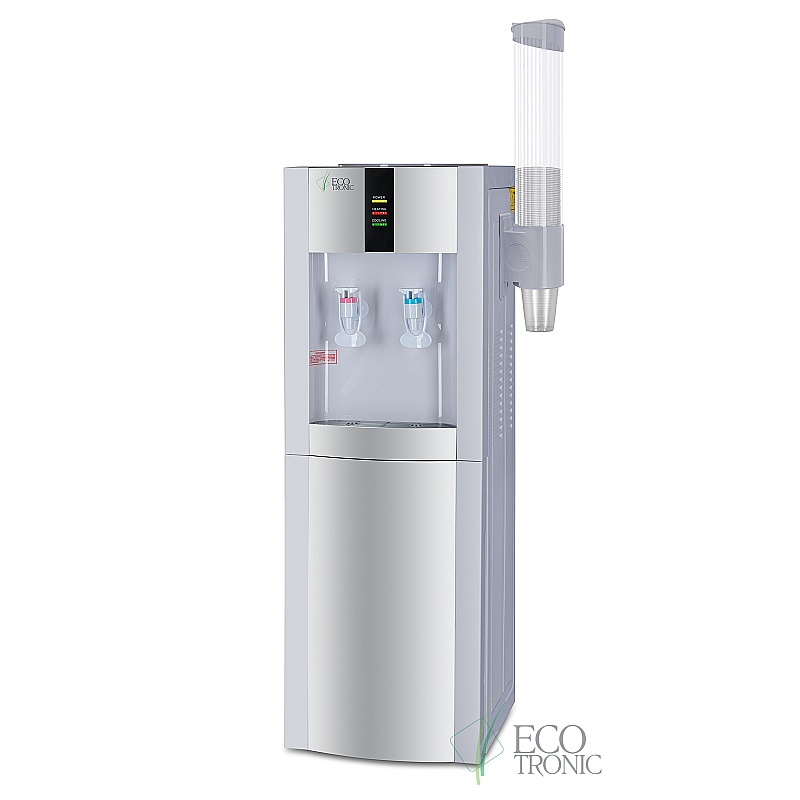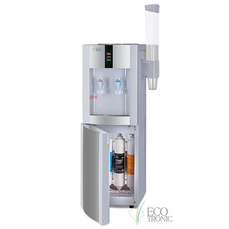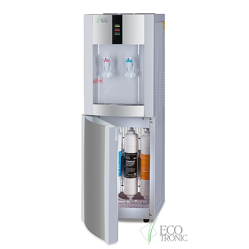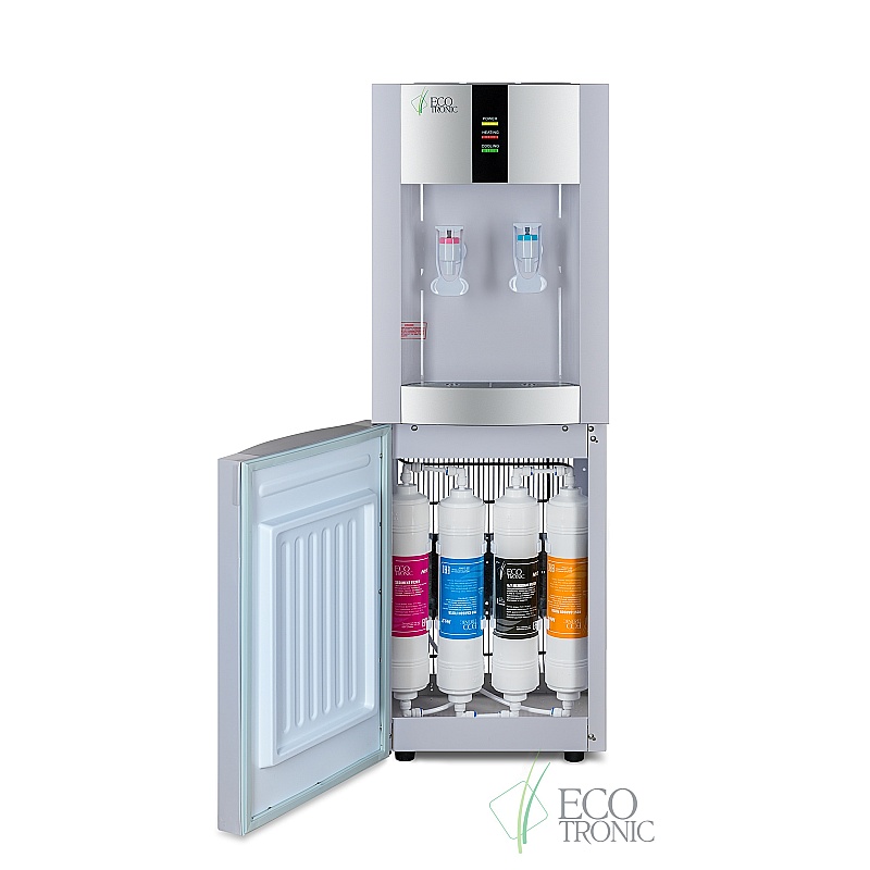 4-х ступенчатая ультрафильтрационная система очистки воды. Краны подачи воды "нажим кружкой". Бак горячей воды 1,2 л., бак холодной воды 4 л. Компрессор LG. Ступени очистки: осадочный (механический) фильтр, угольный префильтр, мембрана ультрафильтрационная, угольный постфильтр.